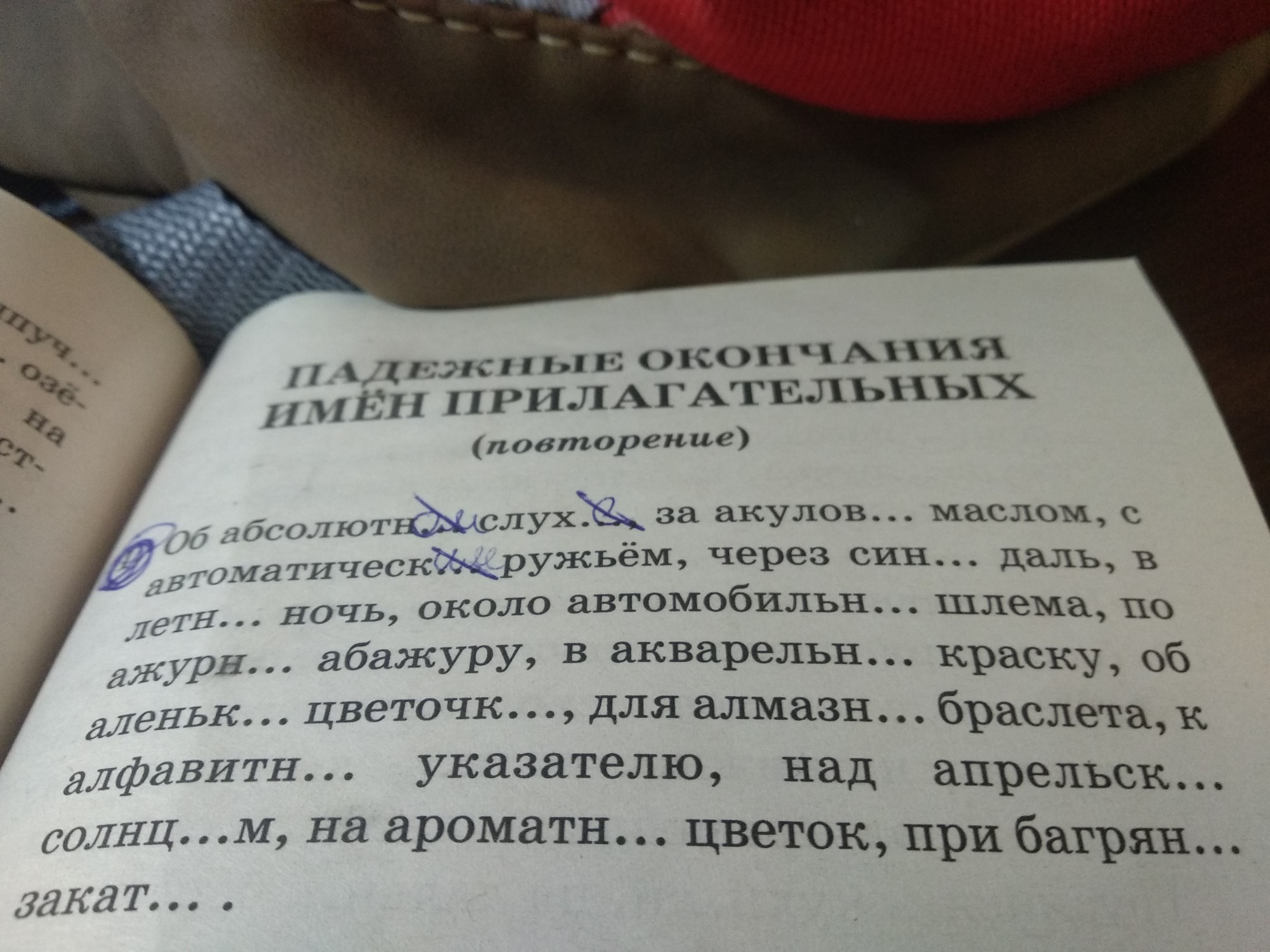 Об абсолютном слухе(П.п.),за акуловым маслом(Т.п.),с автоматическим ружьём(Т.п.),через синюю даль(В.п.),в летнюю ночь(В.п.),около автомобильного шлема(Р.п.),по ажурному абажуру(Д.п.),в акварельную краску(В.п.),об аленьком цветочке(П.п.),для алмазного браслета(Р.п.), к алфавитному указателю(Д.п.),над апрельским солнцем(Т.п.),на ароматный цветок(В.п.),при багряном закате(П.п.).