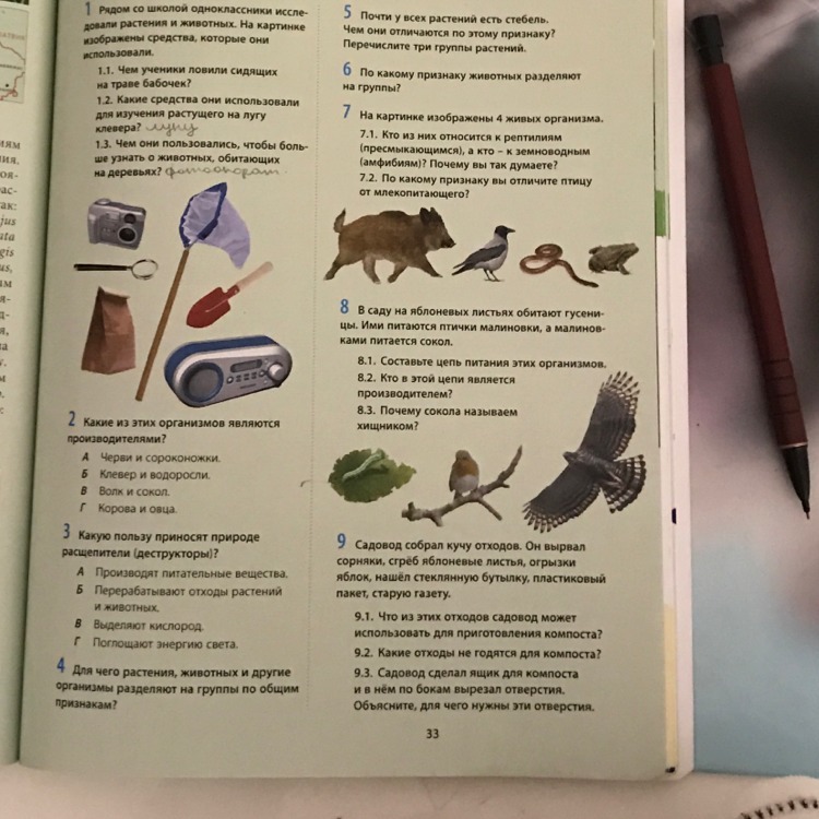 7.1 Змея и лягушка - рептилии. Кабан и ворона - амфибии.