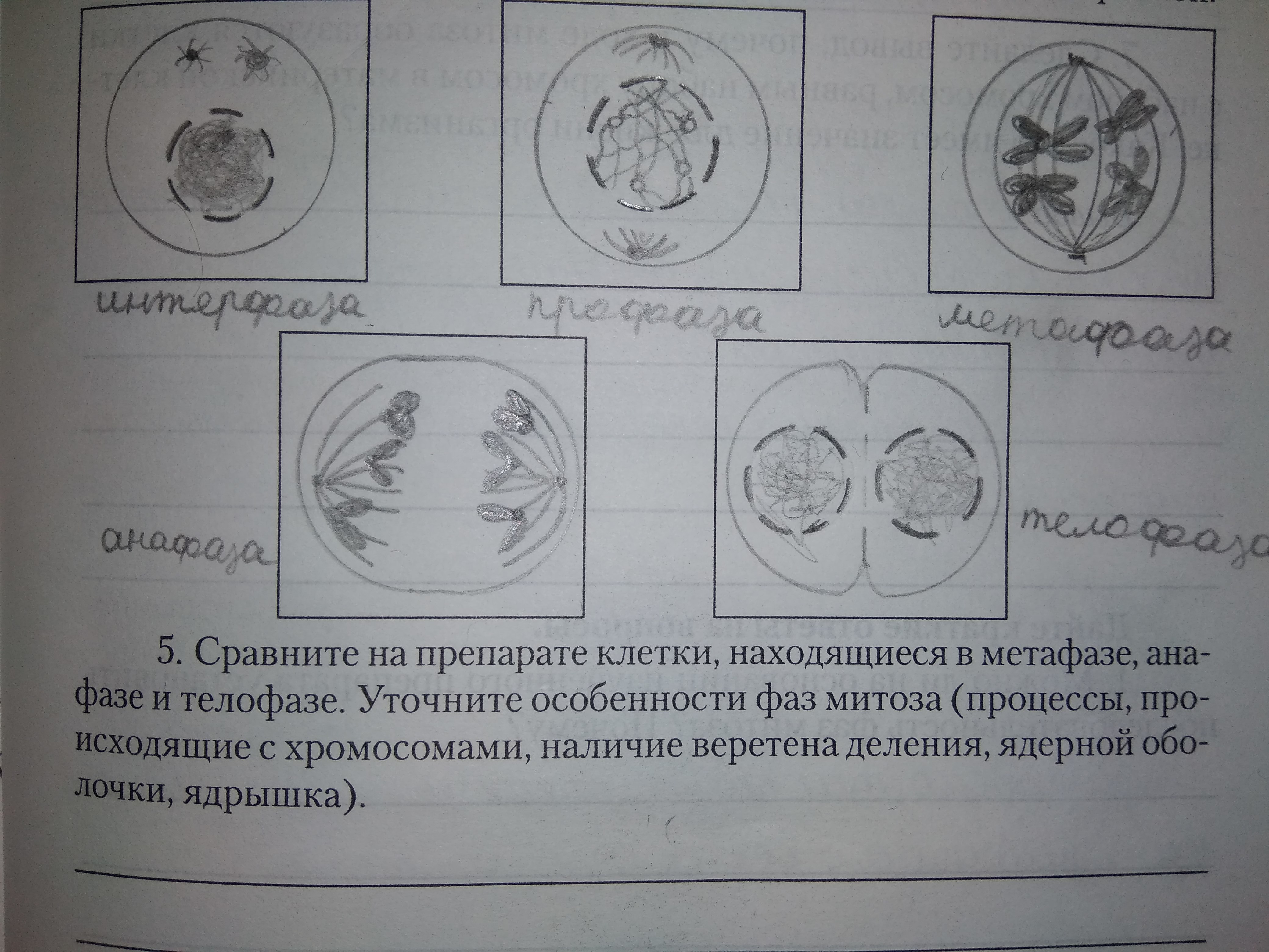 профаза - исчезает ядерная оболочка. В данной фазе центриоли расходятся к полюсам клетки, а хромосомы конденсируются (уплотняются);