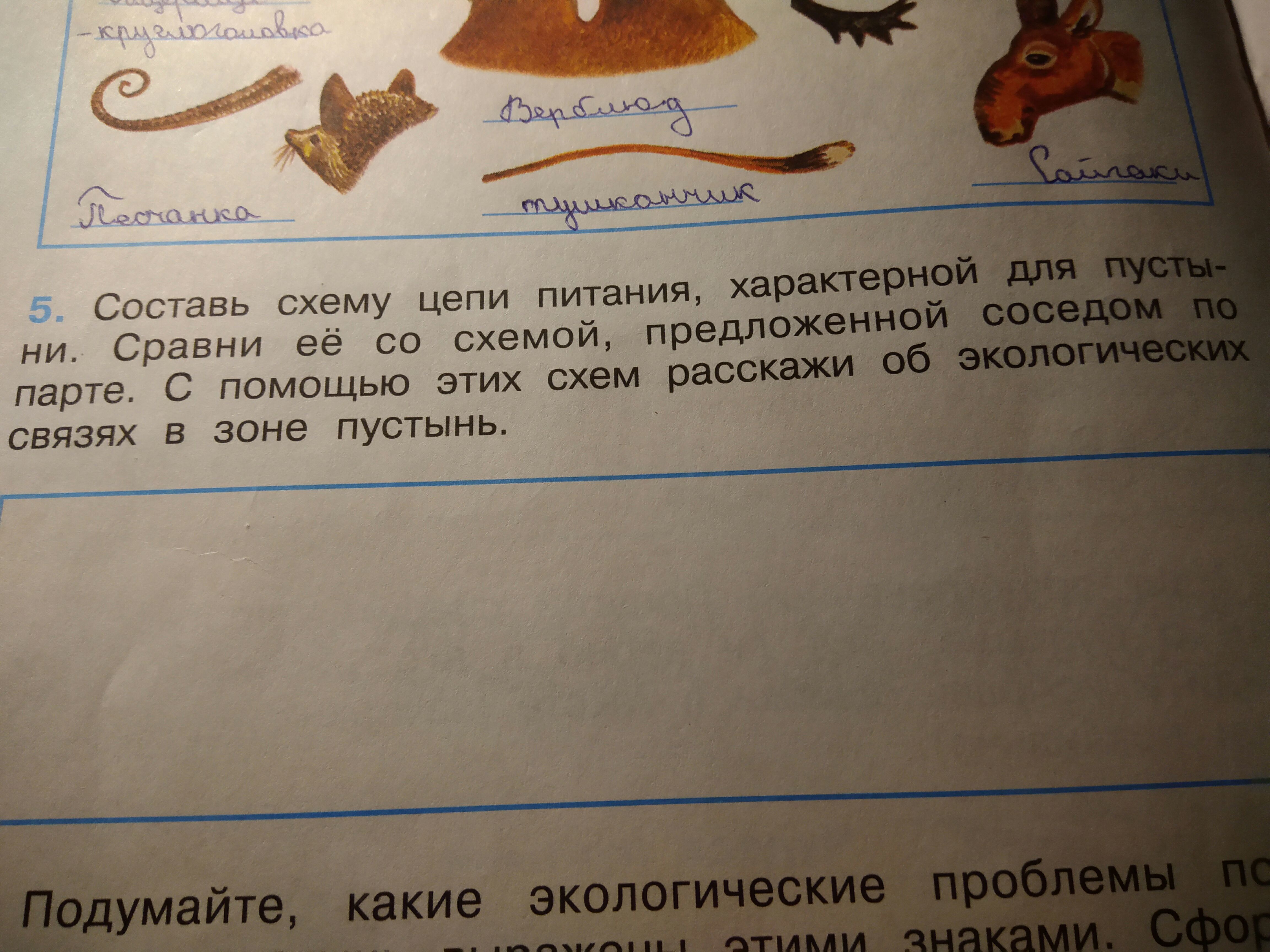 Любое растение ---> мелкий грызун (тушканчик) ---> рептилия (варан) ---> крупная птица ( Стервятник).