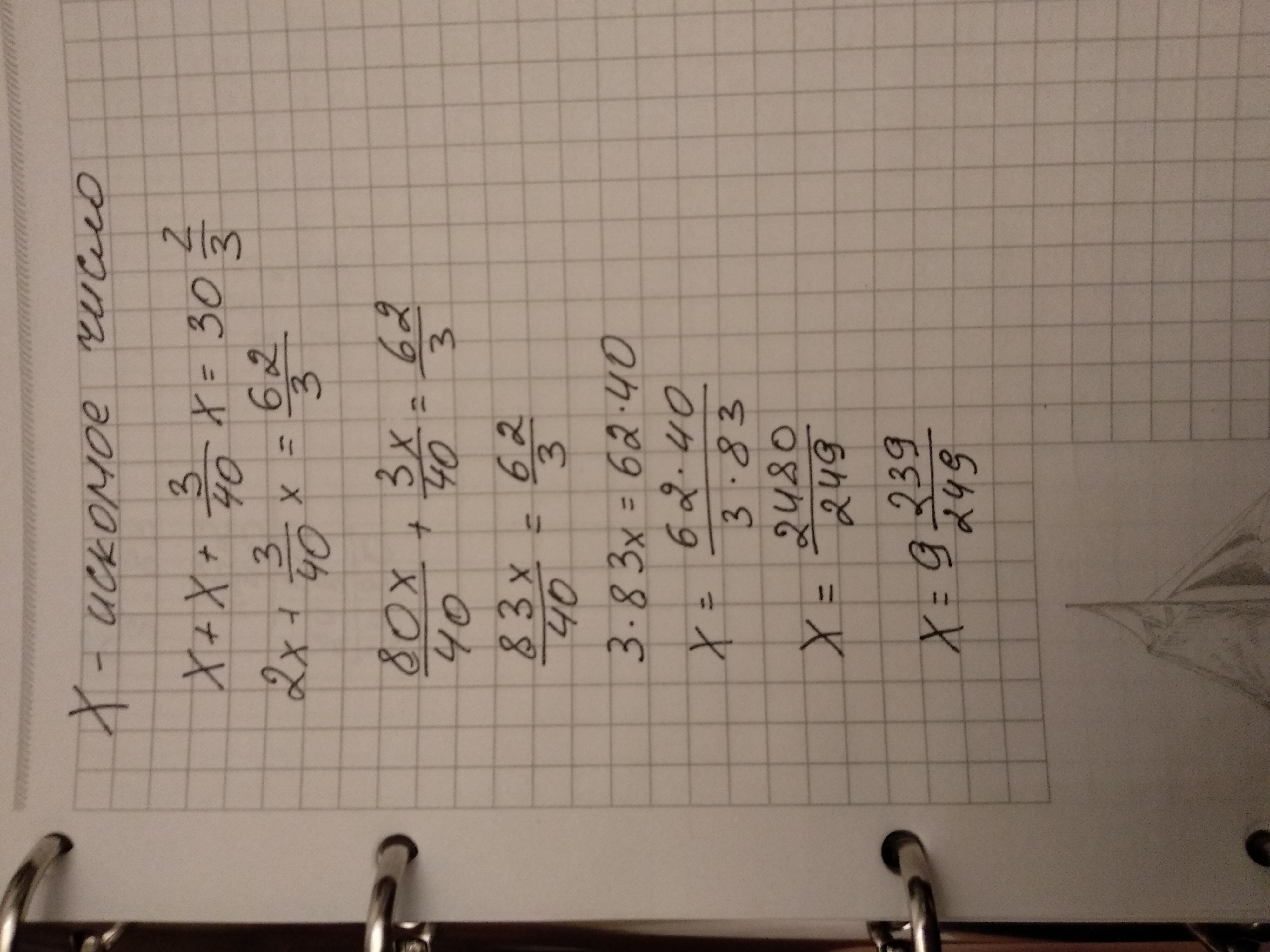 Если к задуманному числу прибавить то же число , а затем число, в 3/40 раза больше задуманного, то получится 30 2/3. Какое число задумано?