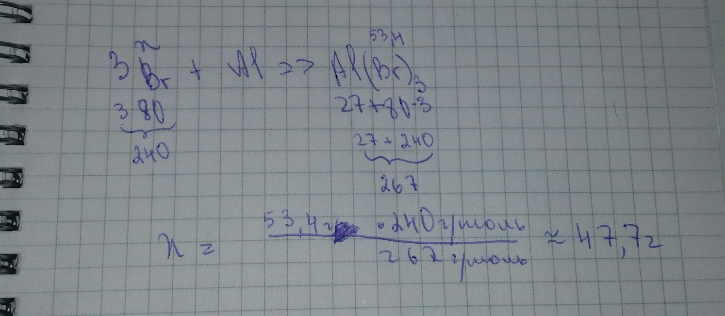 Над элементами пишем известное - неизвестное. Под ними молярную массу. И решаем пропорцией