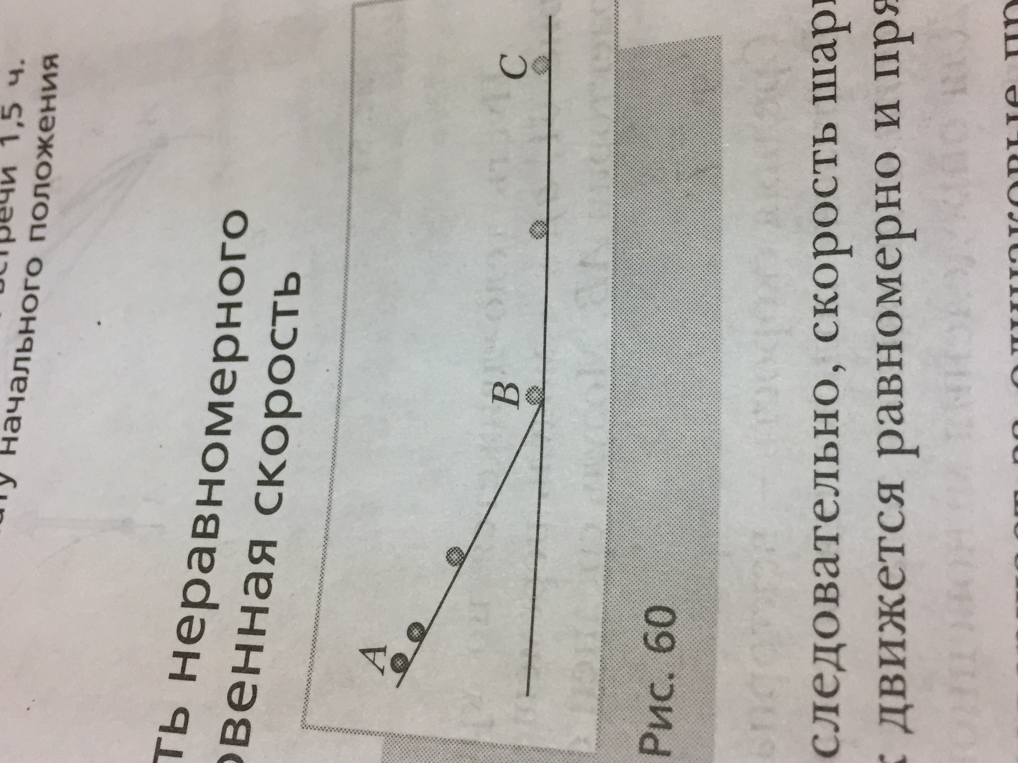 Укажите на рис. 60 участки траектории равномерного и неравномерного движения шарика