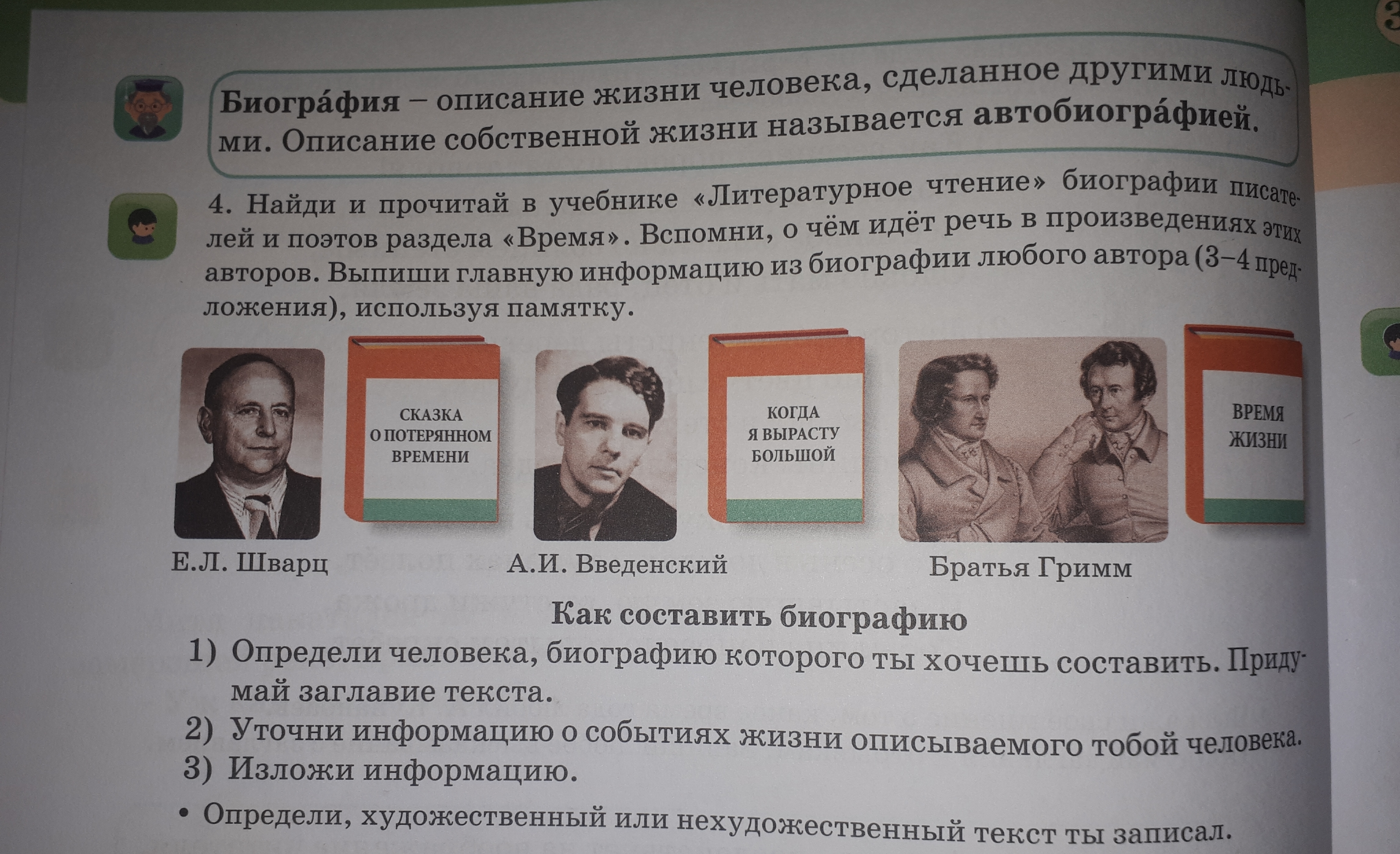 Что бы составить биографию для начало нужно сделать то, что сказано в учебнике.