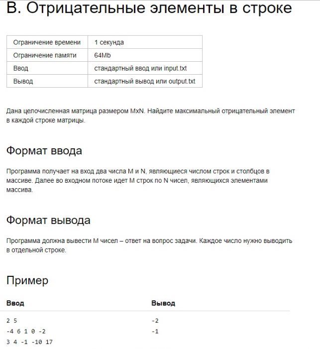 for y in matrix:print(max(list(filter(lambda x: x<0,y))))