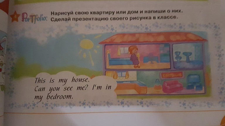 Если перевод возле нарисованного дома,то Это мой дом ты меня видишь я в спальне