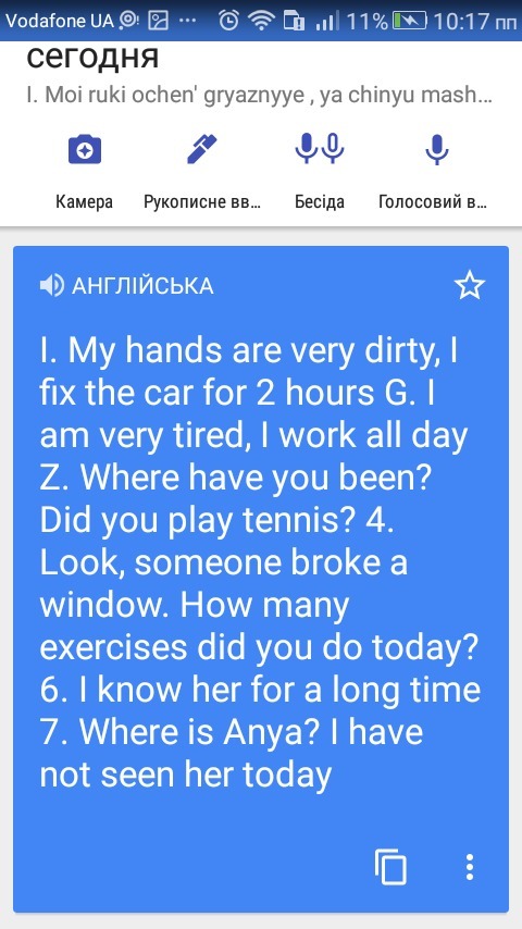 1. Мои руки очень грязные, я чиню машину 2 часа