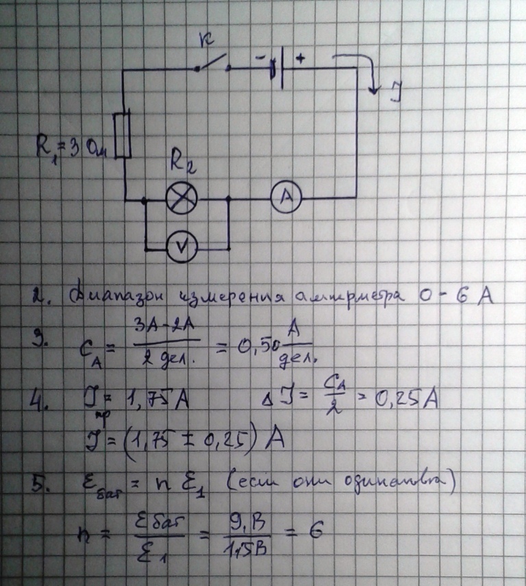 4.Чему равна сила тока текущего через нить накаливания лампочки. I=