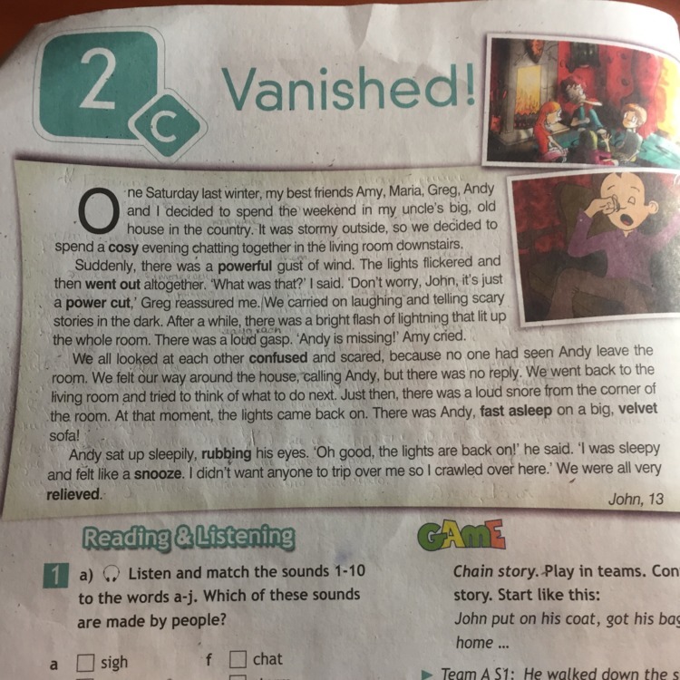 There was a strong wind outside, some lights flickered and then the lights were turned off. What was that? Nicholas told John not to worry, we continued to laugh and tell scary stories in the dark. For a moment a flash of lightning flashed into the room. There was a loud knock, andy no! cried the army.