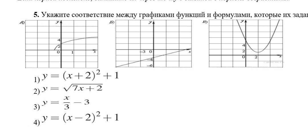 помогите плииз!! установить соответствие между графиками функций и формулами, которые их задают