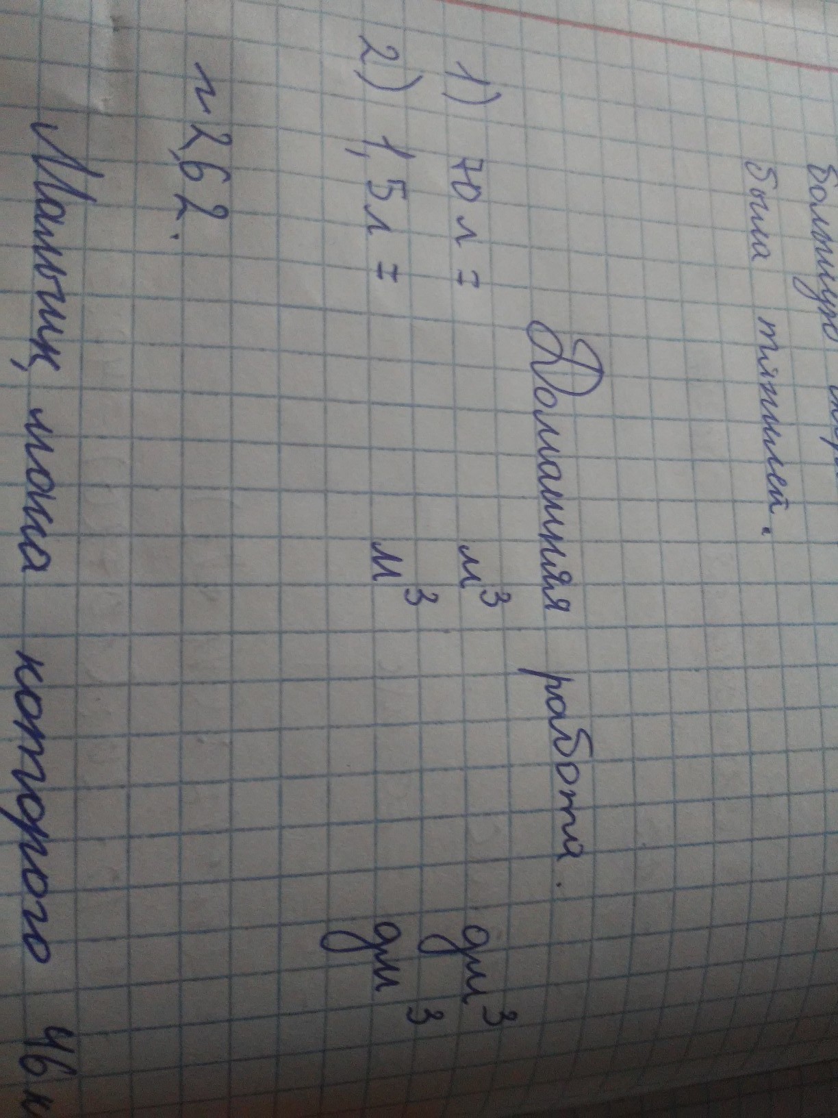 1) 70 литров = 0.07 кубических метров = 70 кубических дециметров