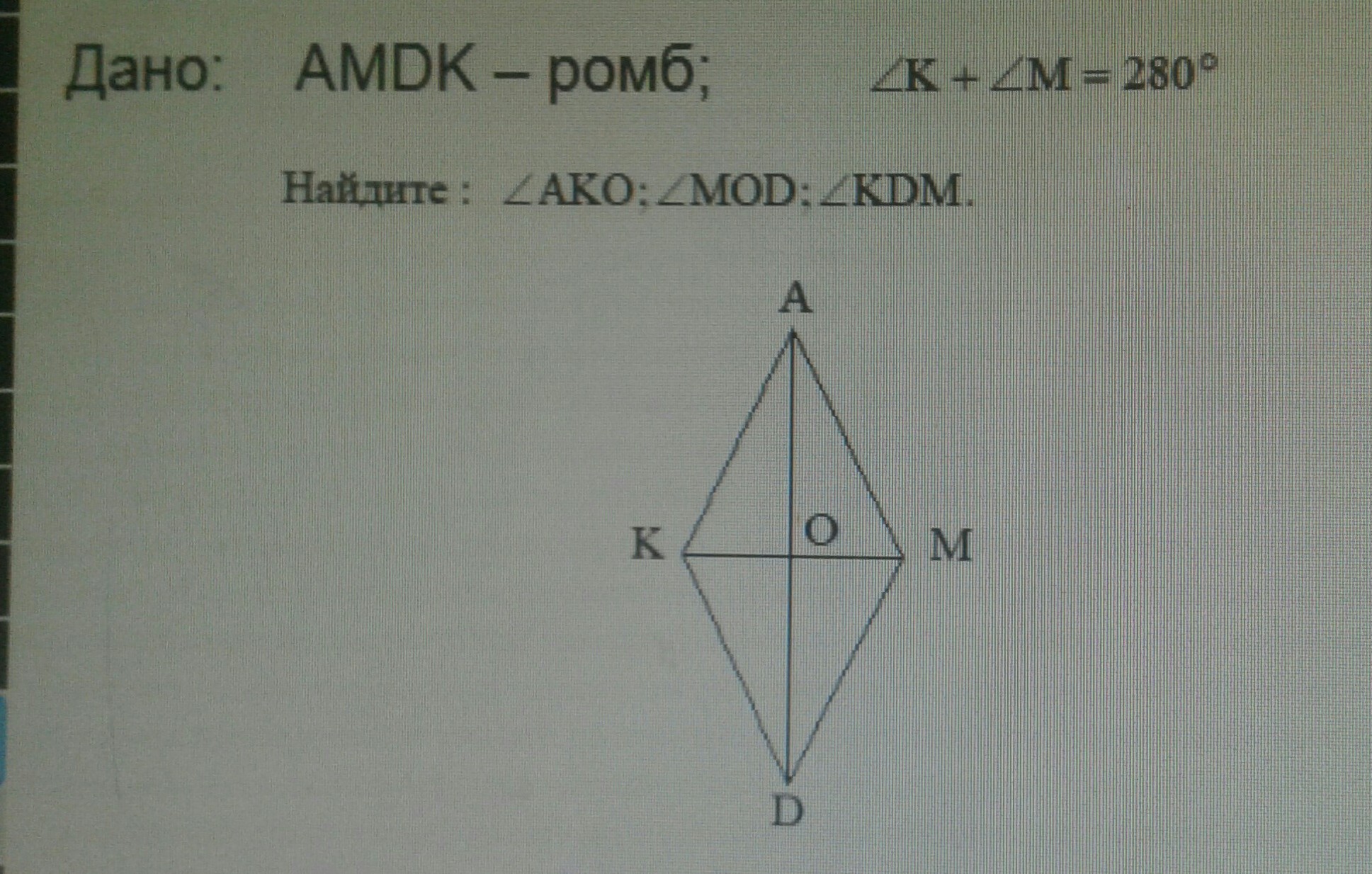 Угол КДМ= (360°-280°):2=40°, или 180°-140°=40°