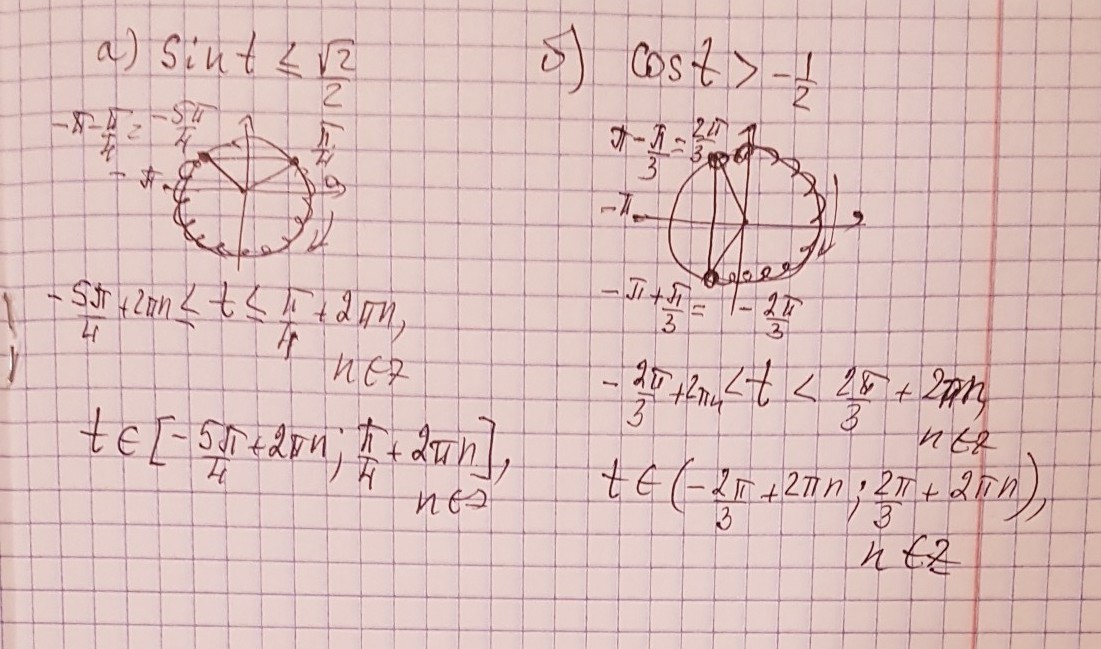 решите неравенства: а) sin t меньше либо равен корень из 2/2