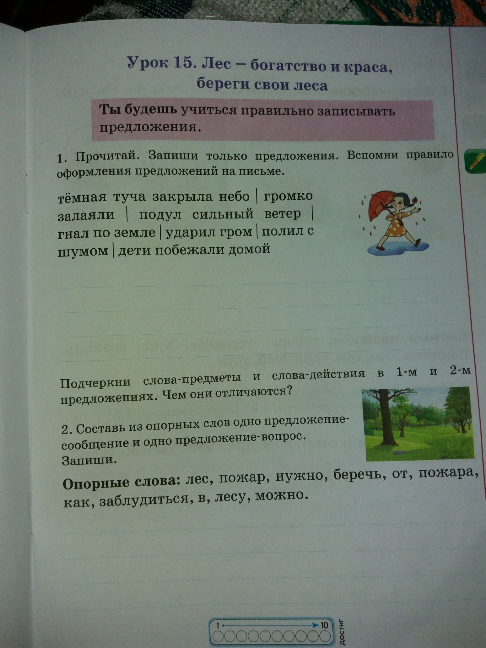 Предложения: Тёмная туча закрыла небо. Подул сильный ветер. Ударил гром.Дети побежали домой.