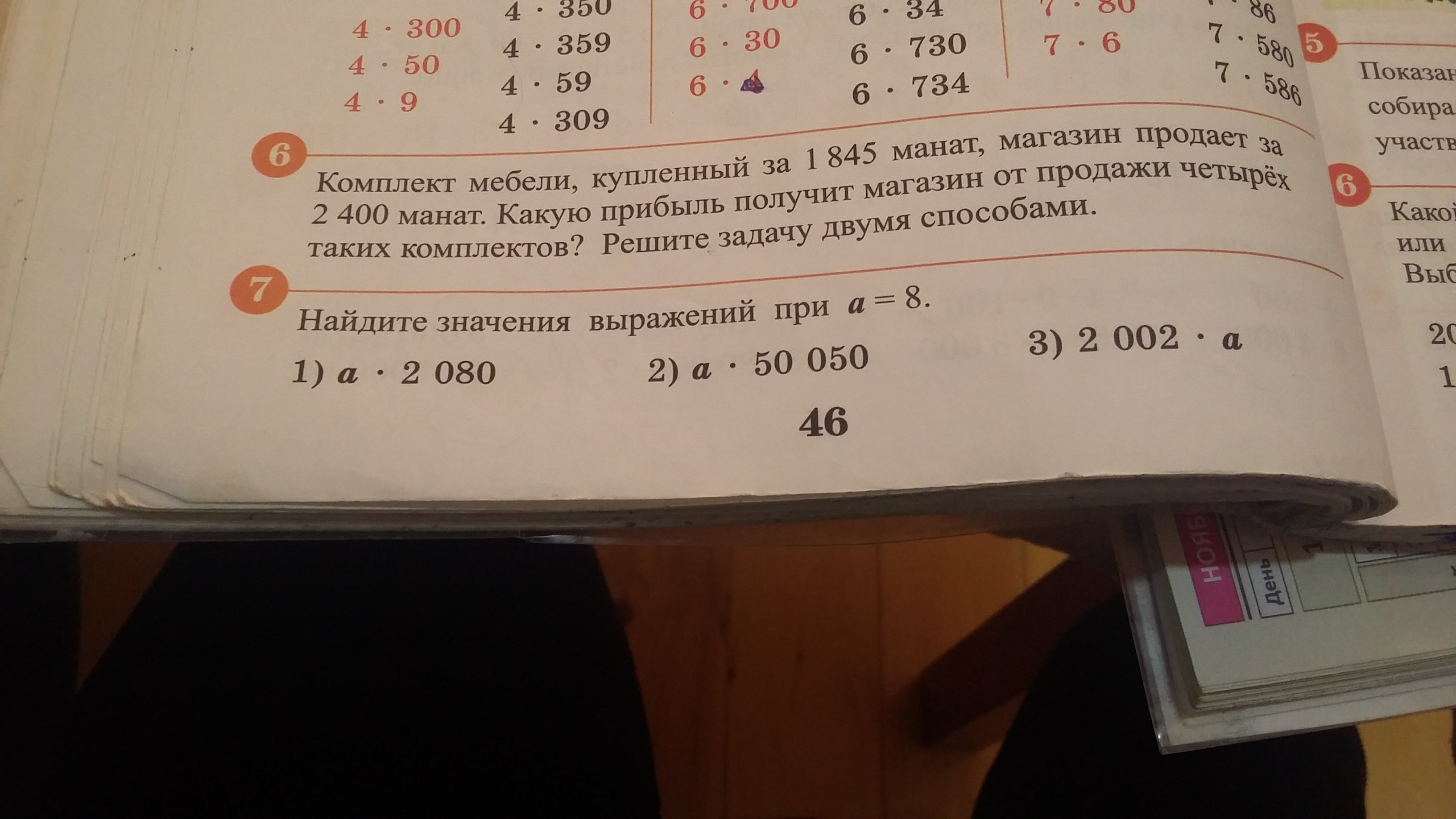 ( 2400 - 1845) · 4 = 2220 (манат) получит магазин прибыли