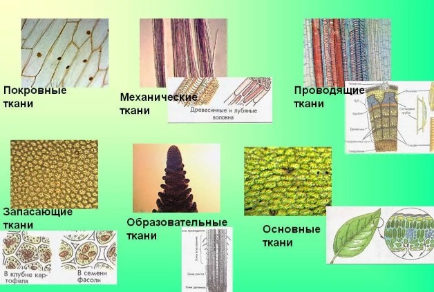 Вот фото,где показано как выглядит образовательная,покровная,механическая,проводящая и основная ткань.