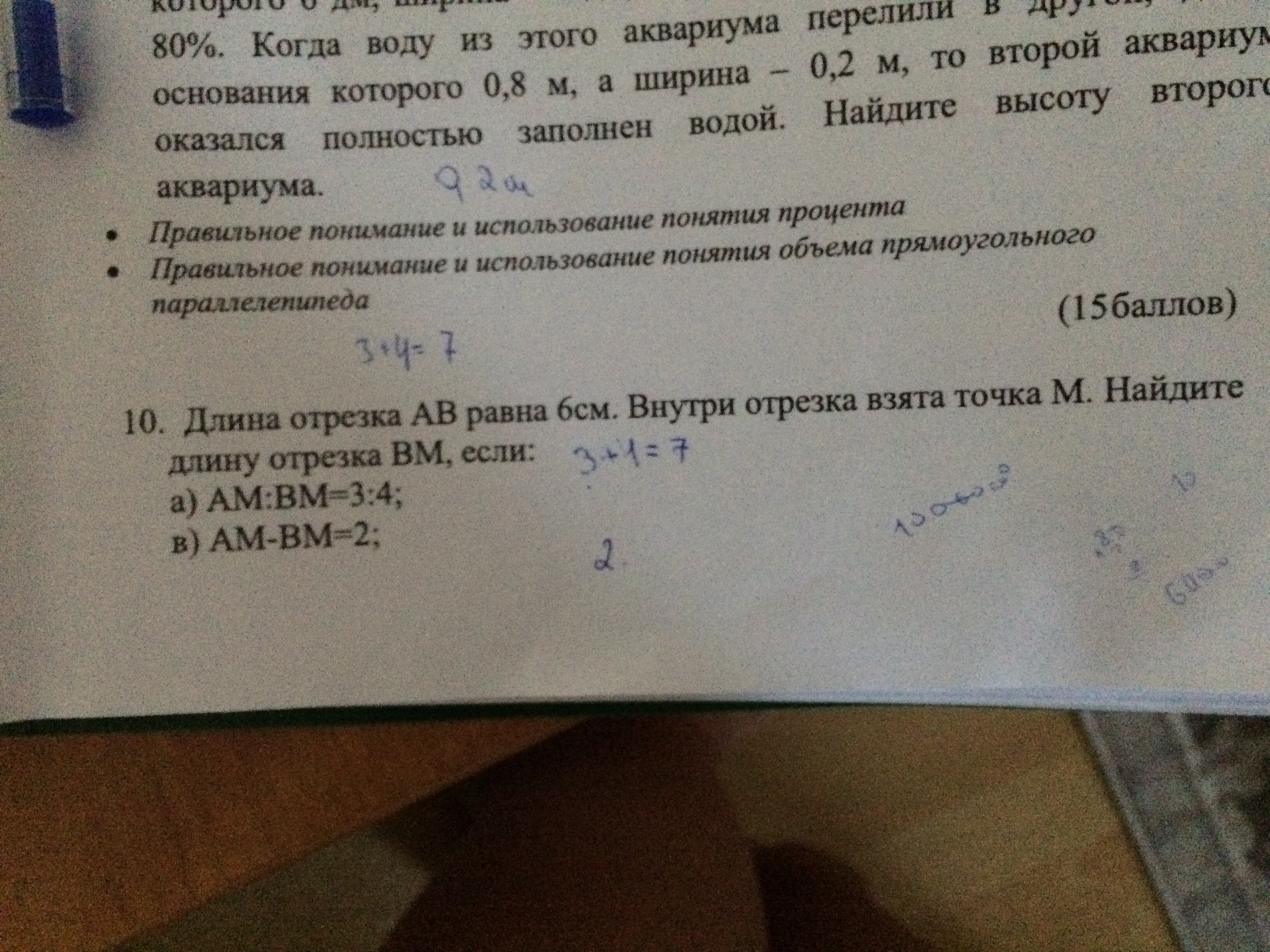 а) пусть х одна часть , тогда 3х+4х=6, х=1 см., следовательно АМ =3см, ВМ=4 см