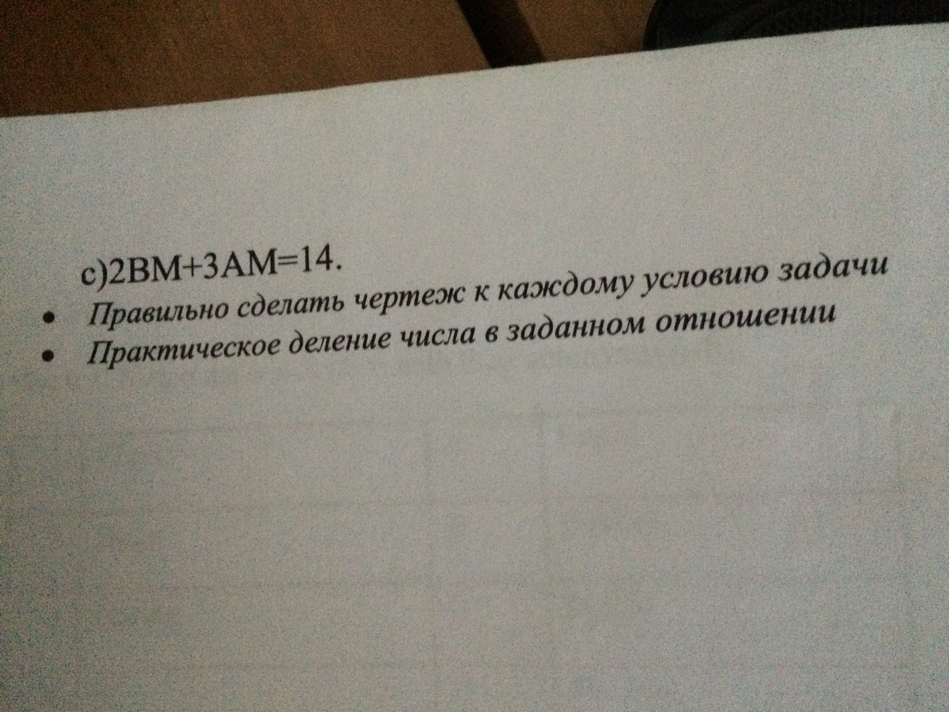 в) ВМ=х, АМ=у 2х+3у=14, а по условию х+у=6. выражаем х через у и подставляем в 1 уравнение х=6-у, 2(6-у)+3у=14, 12+у =14, у=2