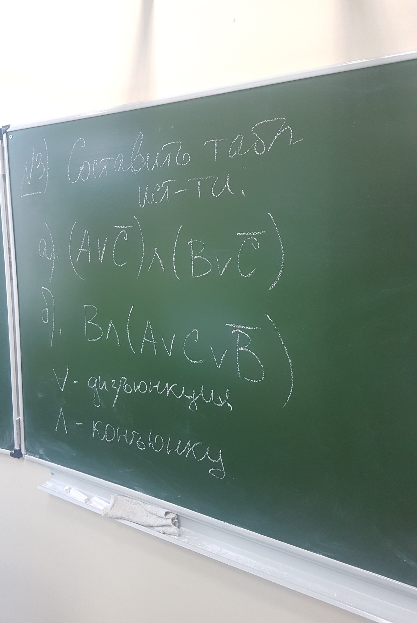 в прицепе, нужно сделать преобразования, и построить таблицу истинности. нужно знать, как раскрывать скобки и как строить таблицу