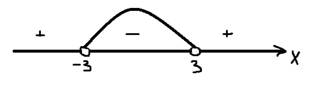x ∈ (-3; 3)