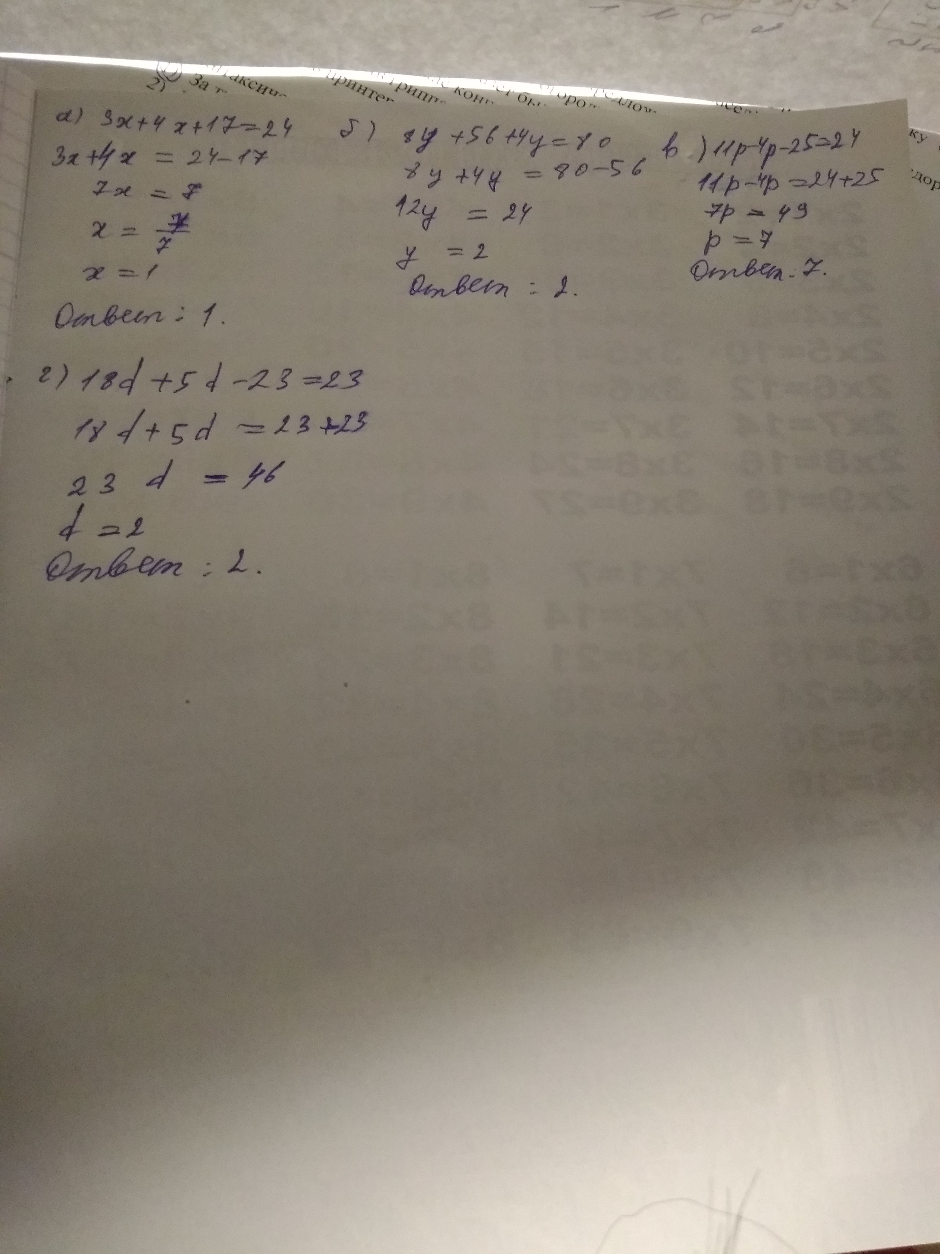 Решите уравнение во всех подробностях умаляю а) 3x+4x+17=24 б)8y+56+4y=80 в) 11p-4p-25=24 г)18d+5d-23=23