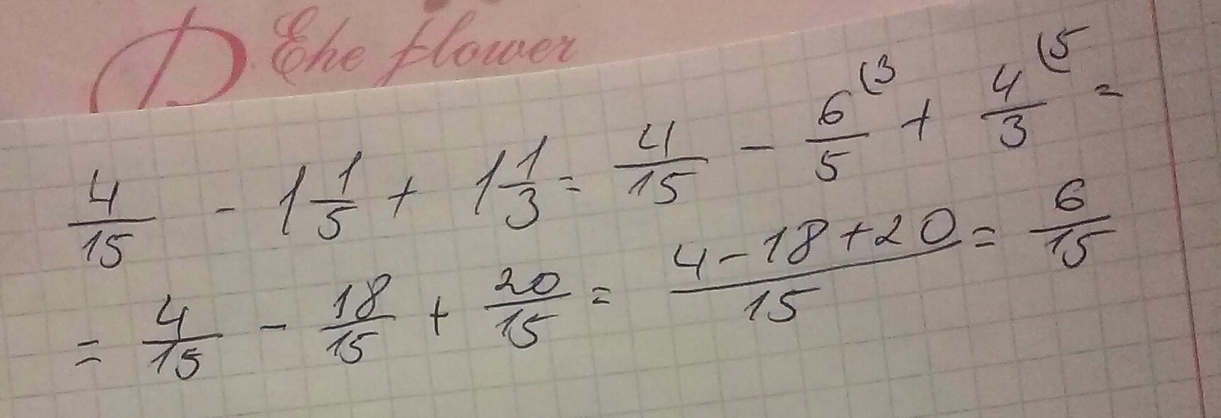 4/15 - 18/15 + 20/15 = (4+2)÷15=6/15