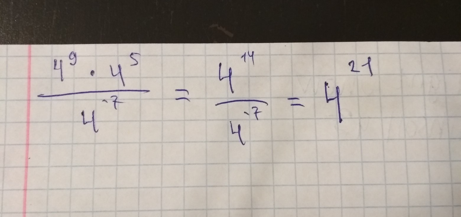 степени в числителе складываем,т.к. умножение. дальше делим на знаменатель,значит из степени в числителе вычитаем степень в знаменателе.