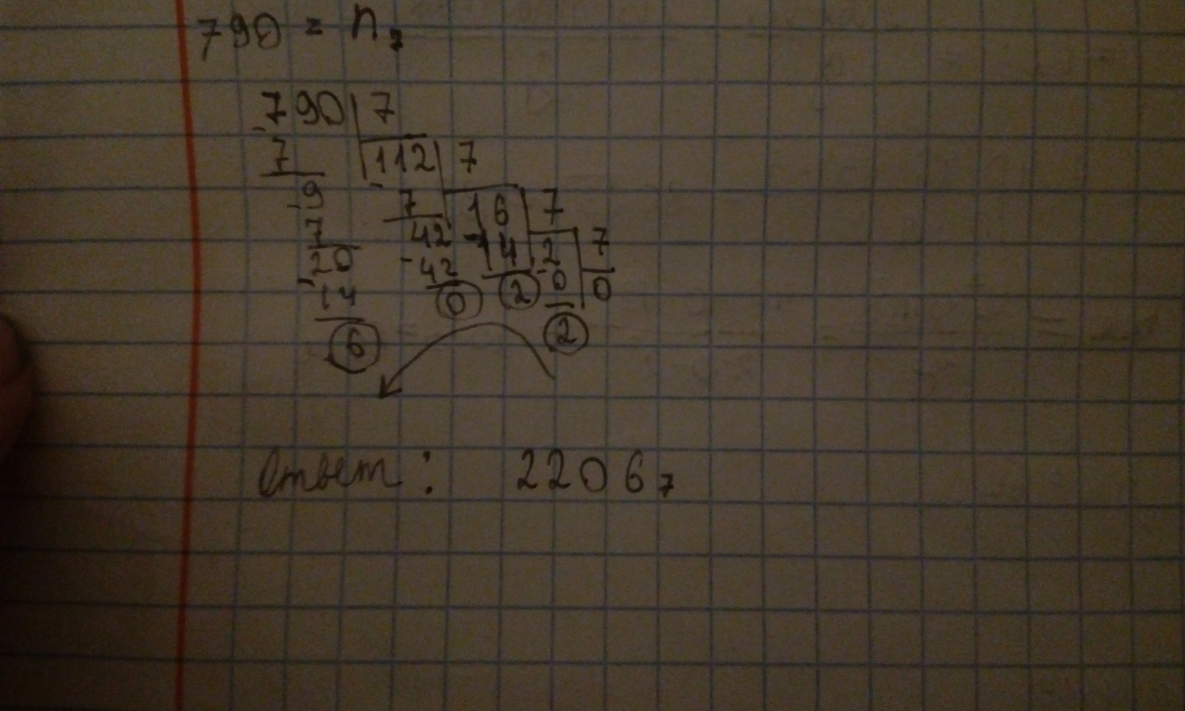 Целую часть от деления опять делить на семь с остатком и т.д, пока в частном не получится ноль.