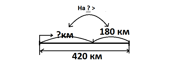 Расстояние между двумя городами 420 км.Поезд на пкти из одного пункта в другой осталось пройти 180 км.На сколько больше поезд прошёл ,чем ему осталось?Если сможете чертёж по братски нарисуйте.)))))))))