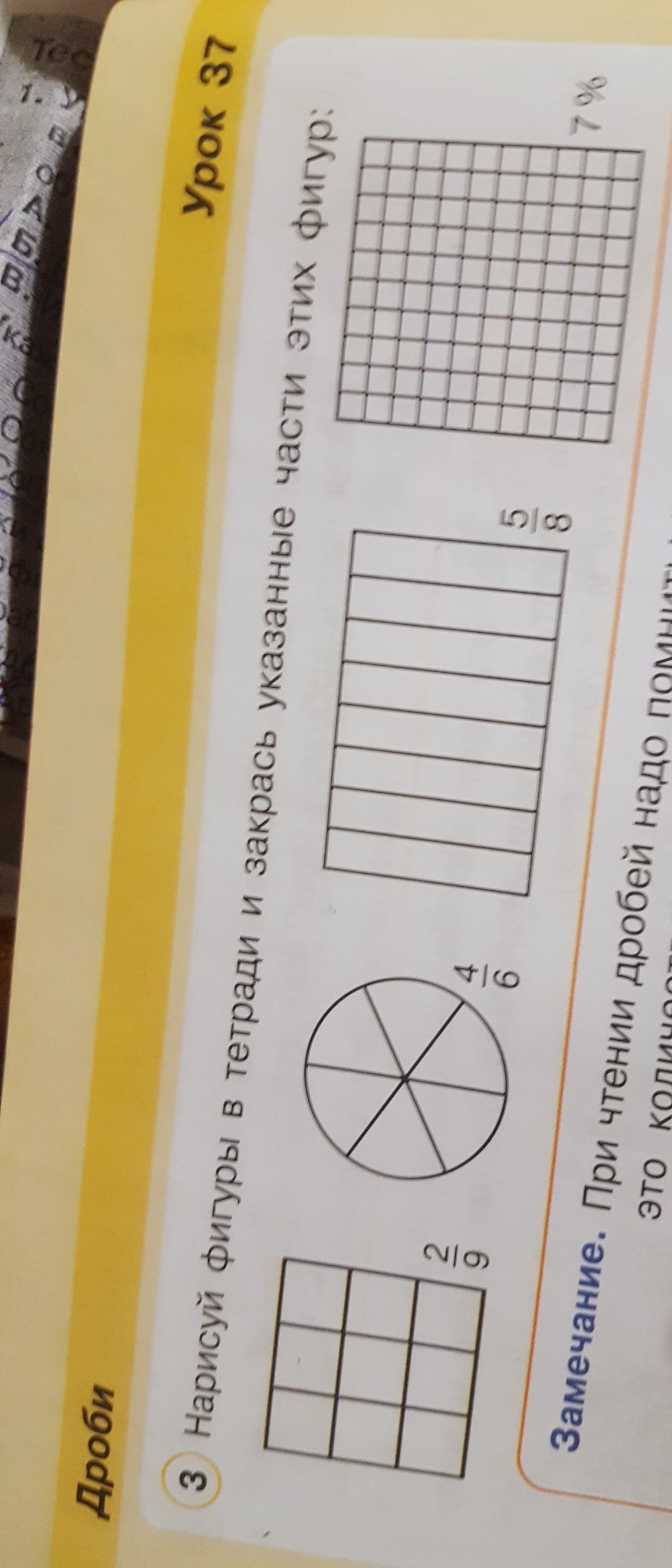 В квадрате где 2/9 надо закрасить только две дольки на которые он поделен