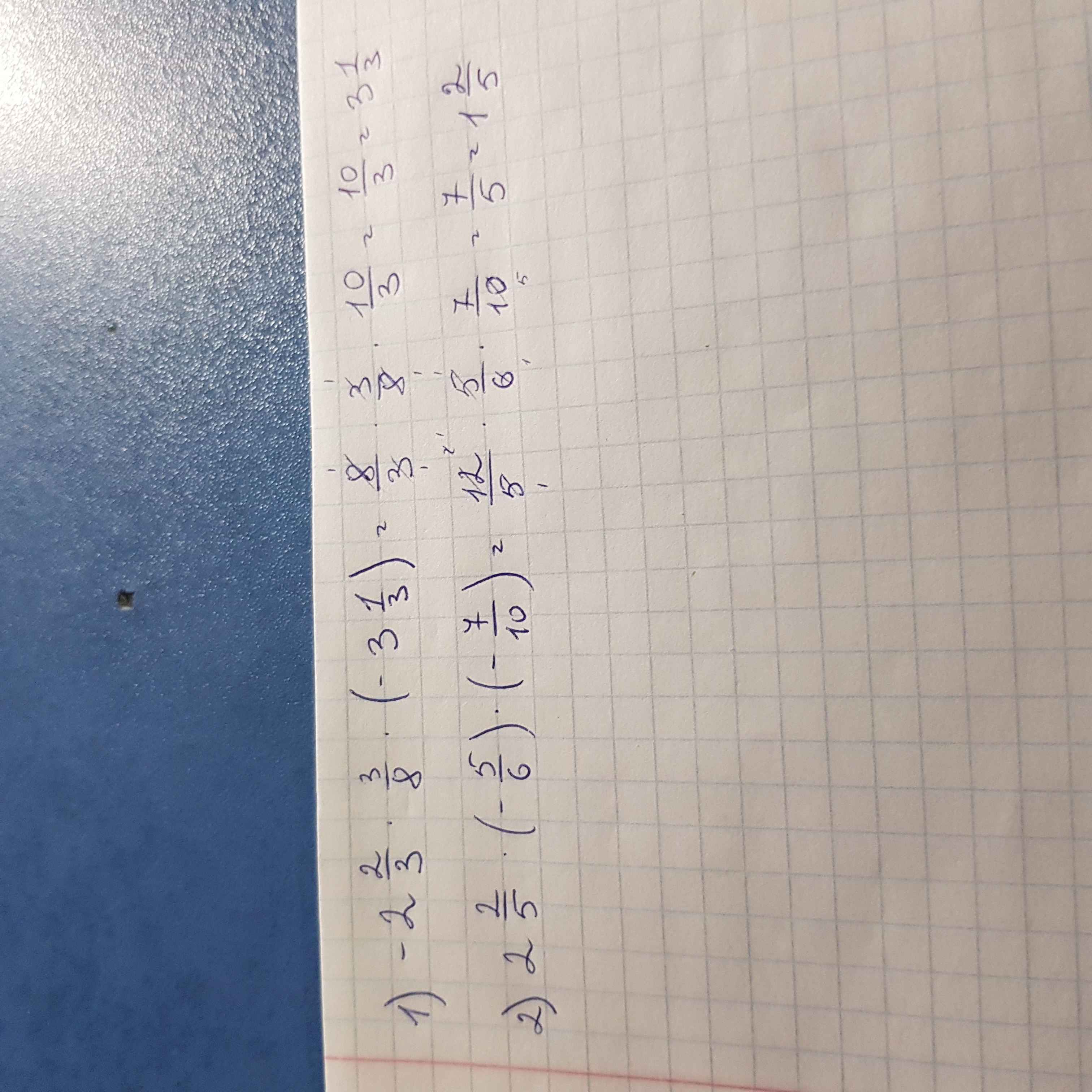 Найдите значение выражения: 1) -2 2/3 умножить 3/8 умножить (- 3 1/3)