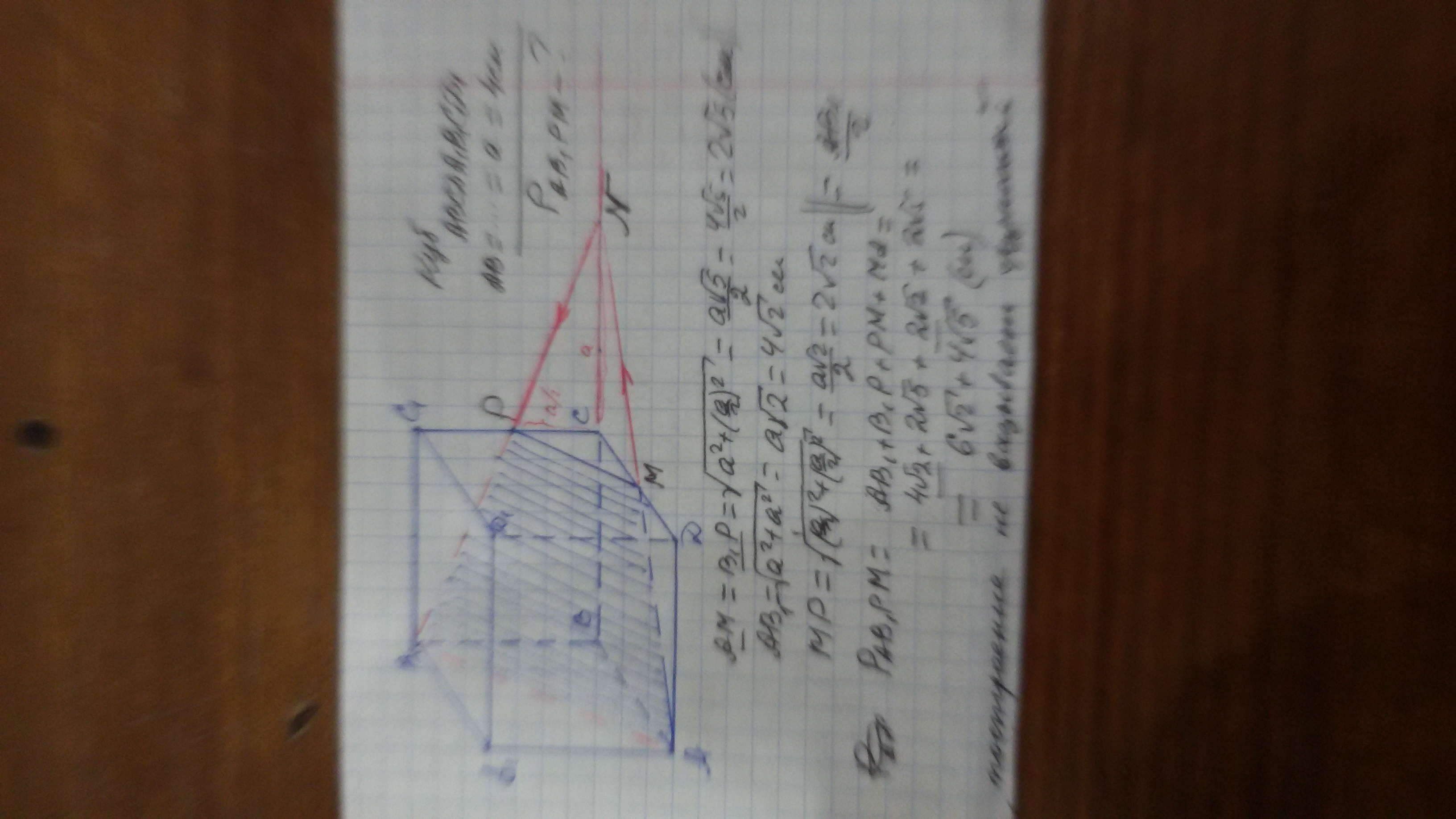 Изобразите куб abcda1b1c1d1. Пусть ребро куба равно 4 см. Постройте сечение куба и найдите его периметр, если это сечение проходит через точки А, M и P -середины ребер DC и CC1 соответственно