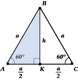 а высота (h) будет являться и медианой, то есть делить сторону (a) пополам.