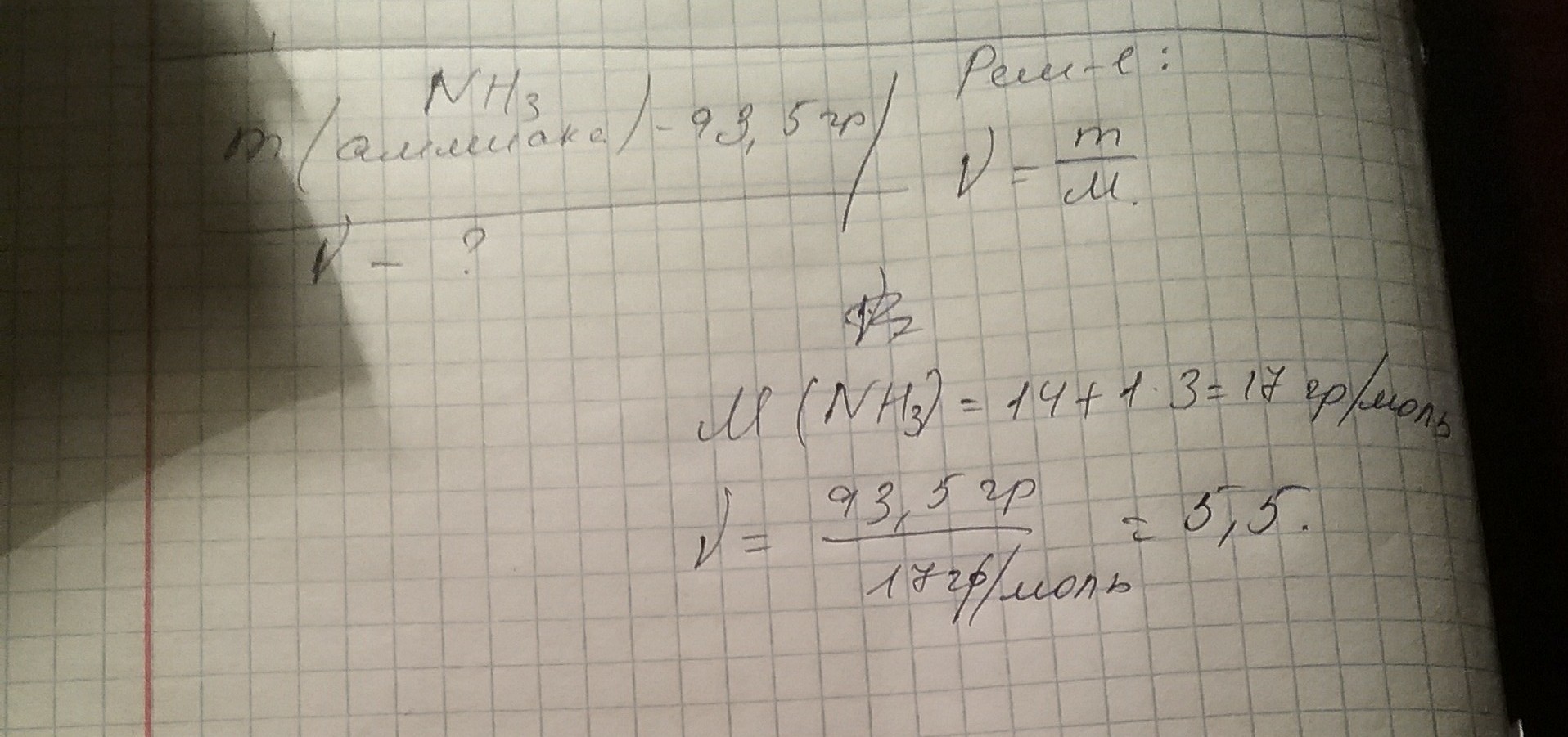 2. Определить количество вещества аммиака (NH3), содержащееся в 93,5г аммиака