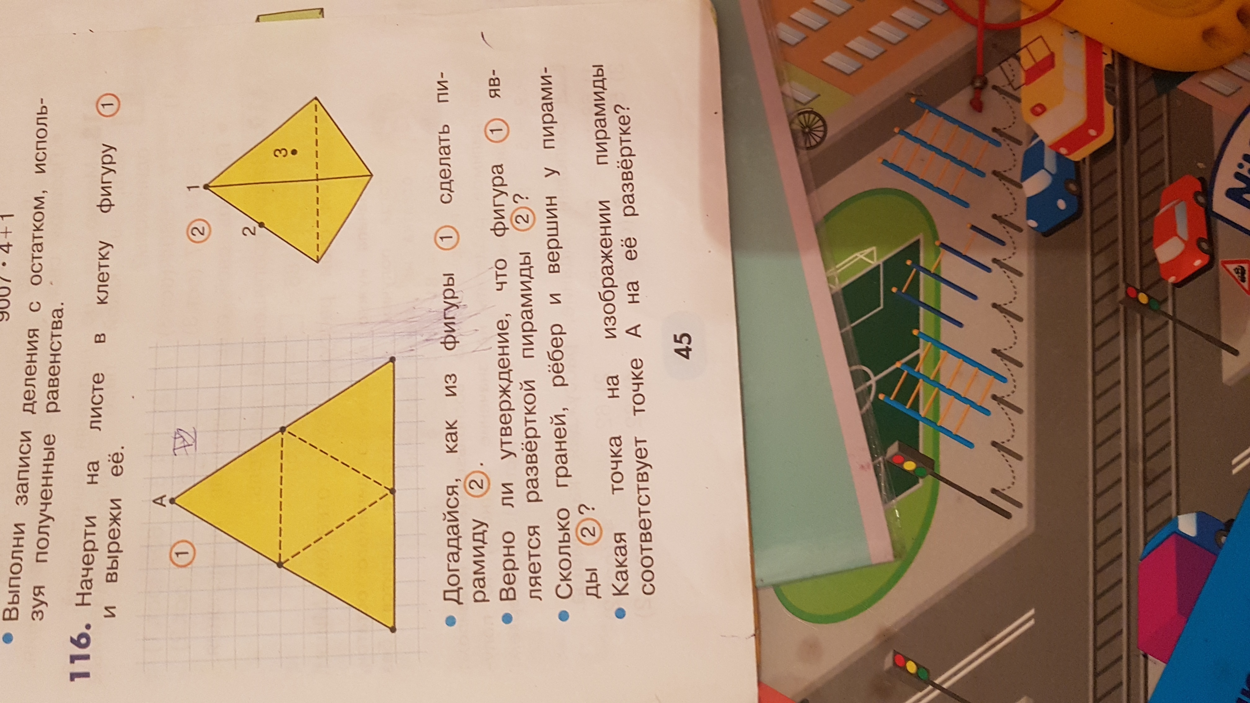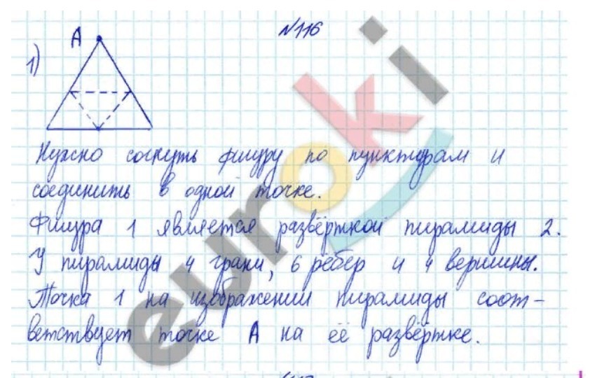 Начерти на листе в клетку фигуру и вырежи её. Какая точка на изображении пирамиды соответствует точке А на её развёртке
