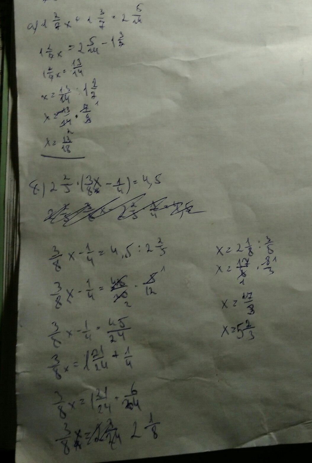 Б) 2 2/5 * (3/8х - 1/4) = 4,5