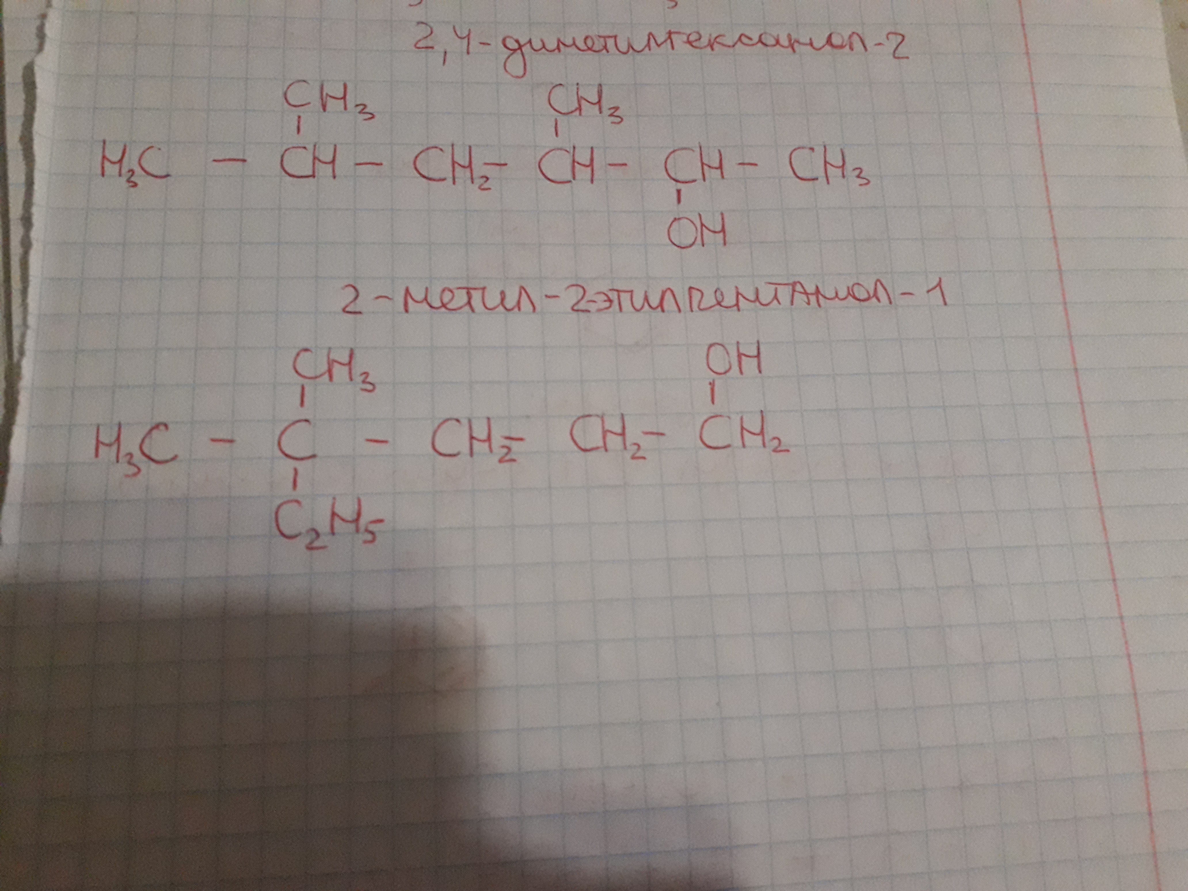 Составьте структурные формулы следующих спиртов: А) 2,4-диметилгексанол-2 Б) 2-метил-2-этилпентанол-1?