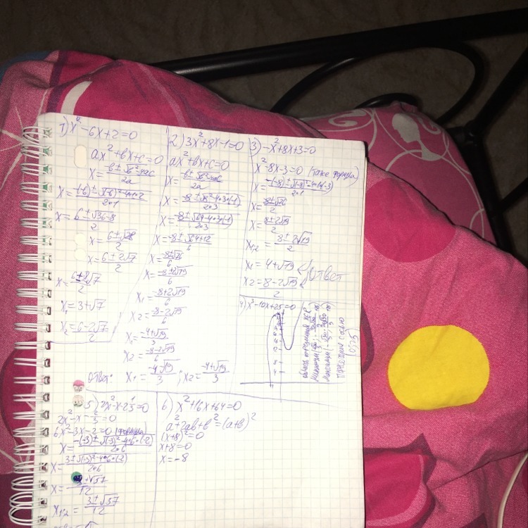 2)D=64-4*3*(-1)=64+12=88>0 2 корня