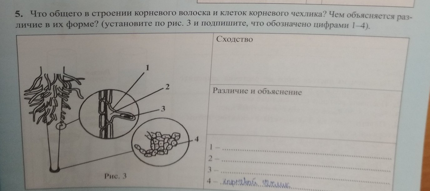 У корневого чехлика и у клетки кожицы лука одинаковые части: тонкая оболочка, ядро, цитоплазма, но разную форму.