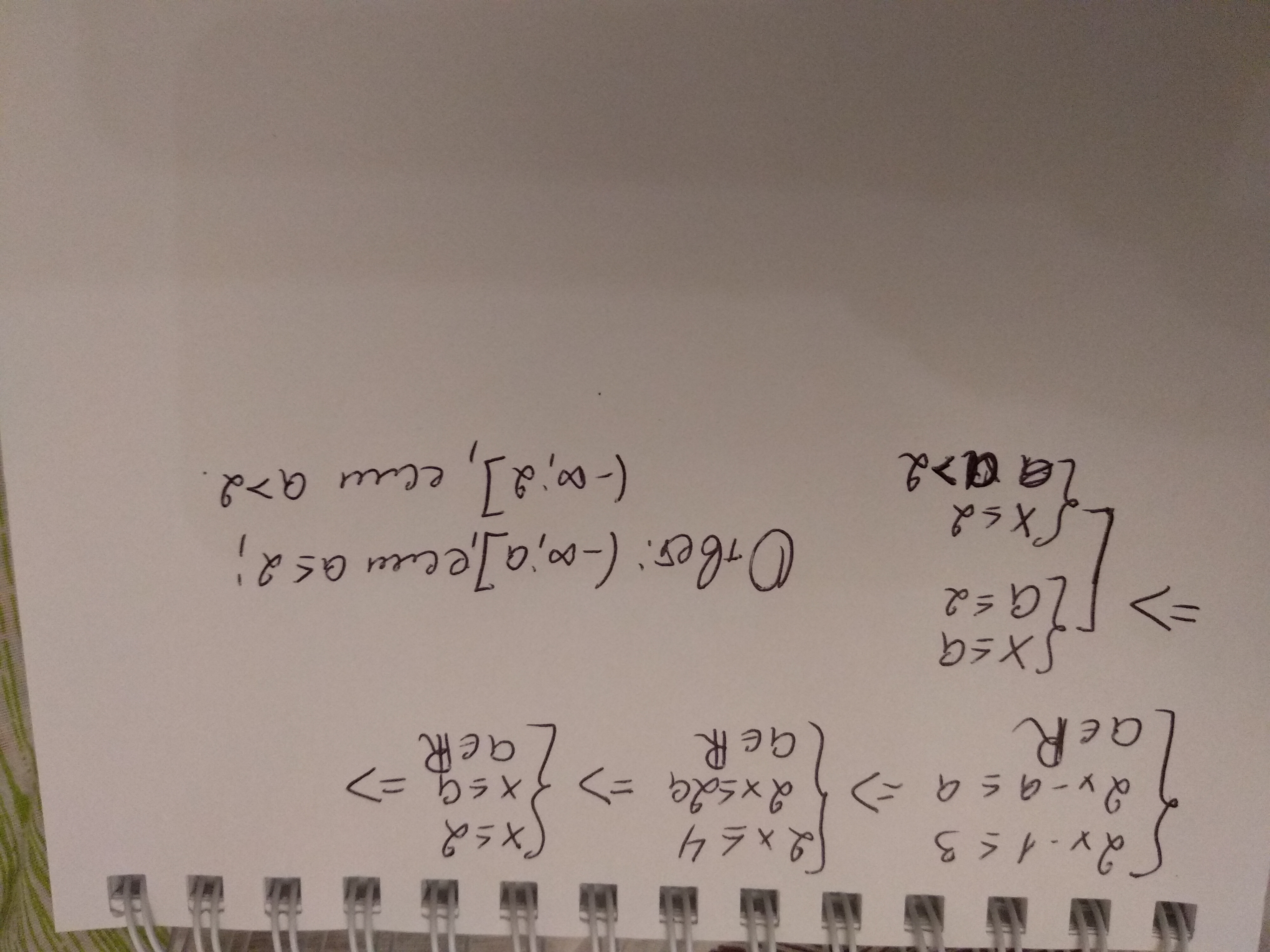 решите совокупность неравенств 2x - 1 меньше или равно 3 и 2x - a меньше или равно a для каждого значения числа a