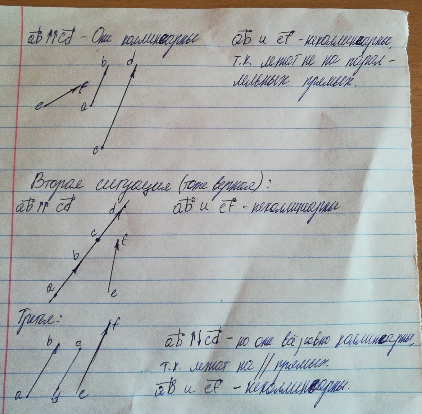 Неколлинеарные векторы - векторы, не лежащие на одной прямой или параллельных прямых.