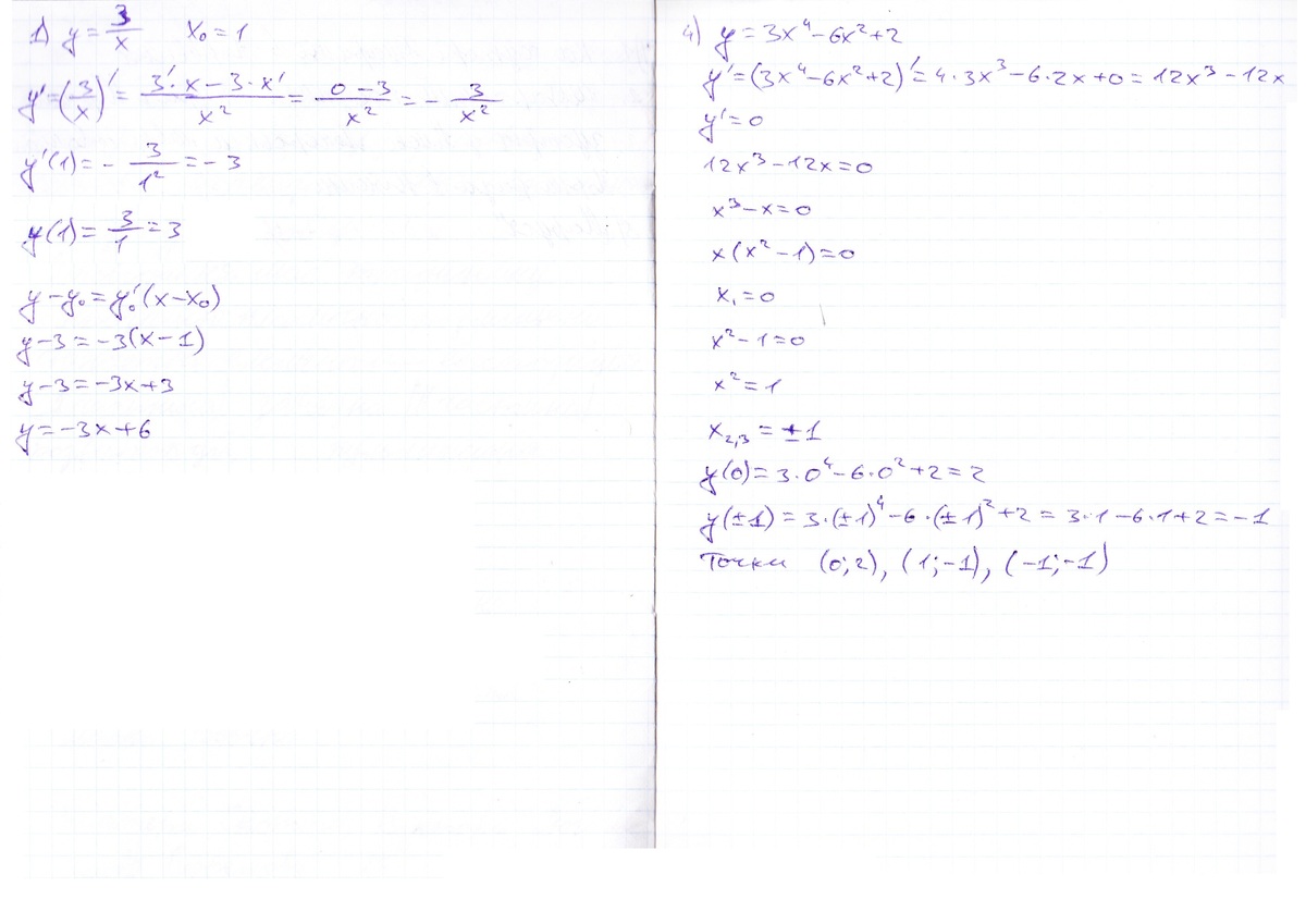 у = 3х4 -6x2 +2