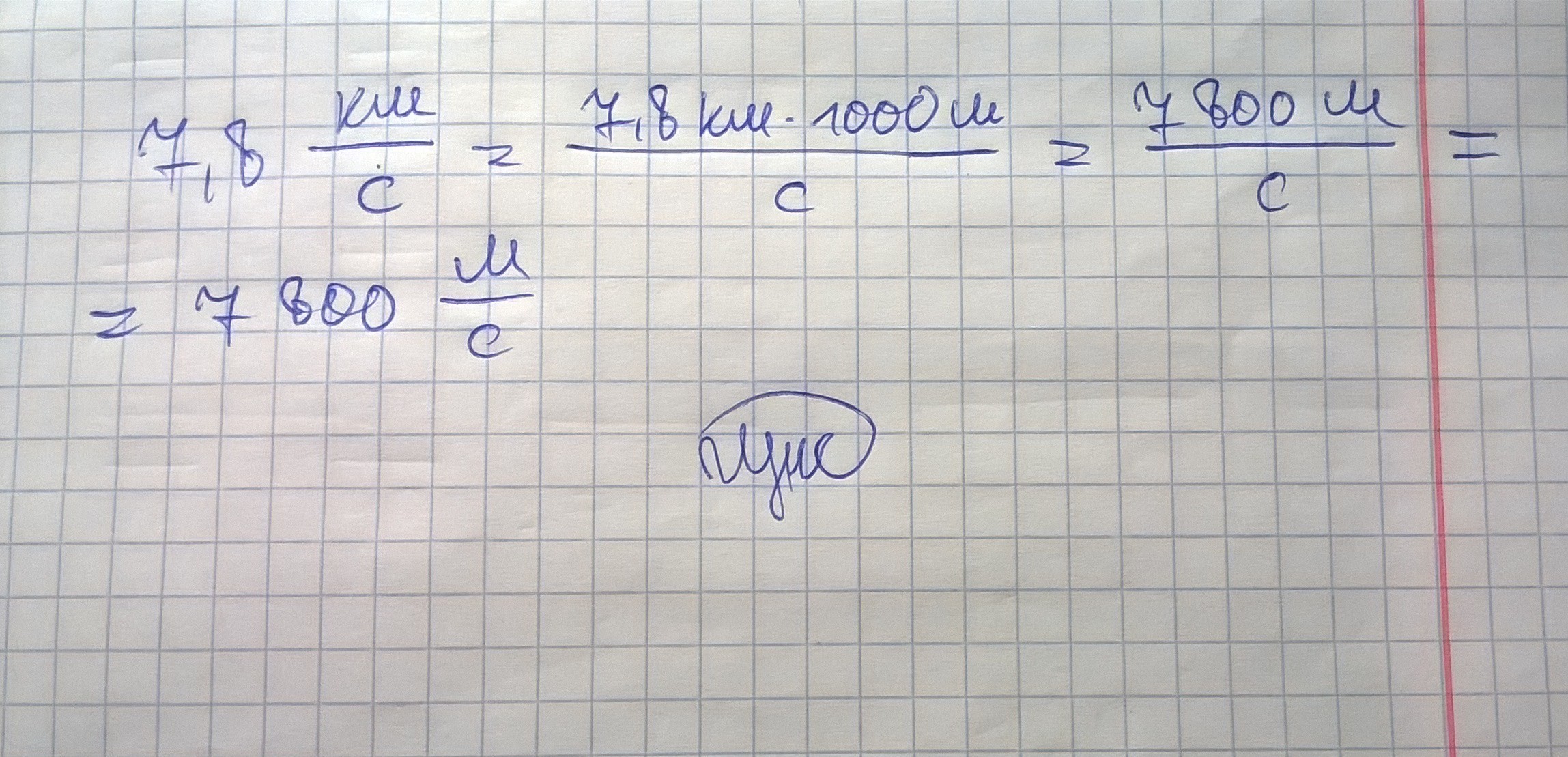 чо правда V=7,8 кмс=7800 мс