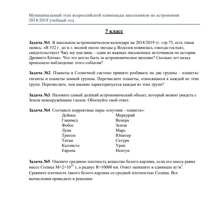 Задача No1. В школьном астрономическом календаре на 2018/2019 гг. стр.75, есть такая