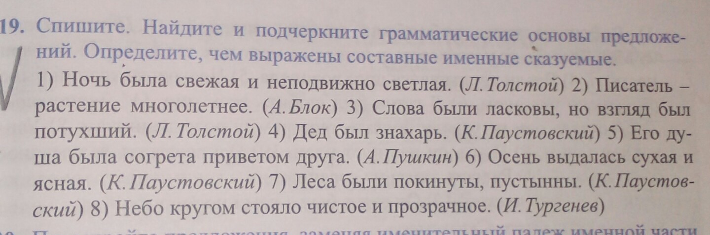 3) Слова - подлежащие, были ласковы - сказуемое. Взгляд - подлежащие, потухший - сказуемое.