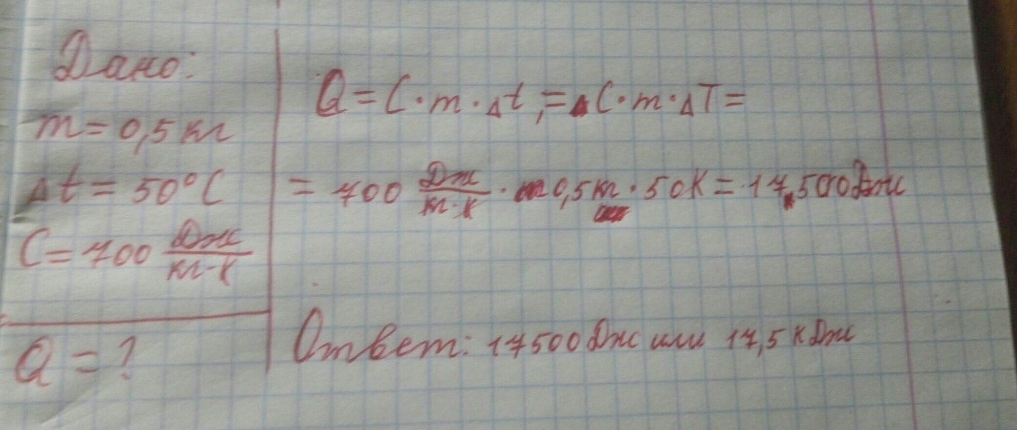 Воздух массой 0.5 кг находится в закрытом баллоне. Какое количество теплоты необходимо передать воздуху, чтобыего температура повысилась на 50 градусов цельсия? Удельная теплоёмкость воздуха 700 Дж/(кг умножить K)