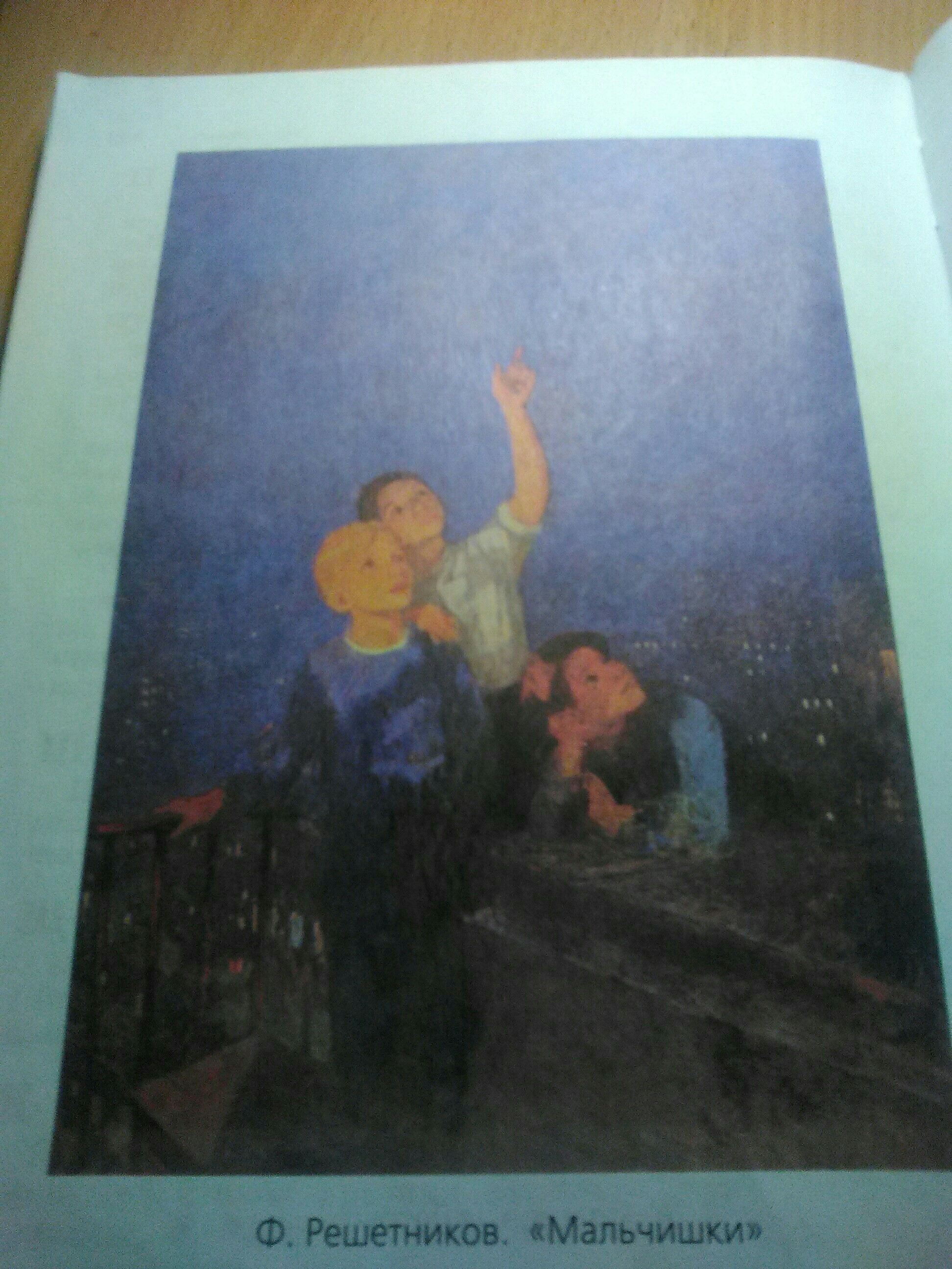 Было ночь, мальчики сидели и любовались на небо и звёзды .Они дружно стояли и смотрели на небо который очень ярко светило. Небо было необычно красивым. В дали светили ,свет из домов как светлячки.Ночь было необычно красивым.