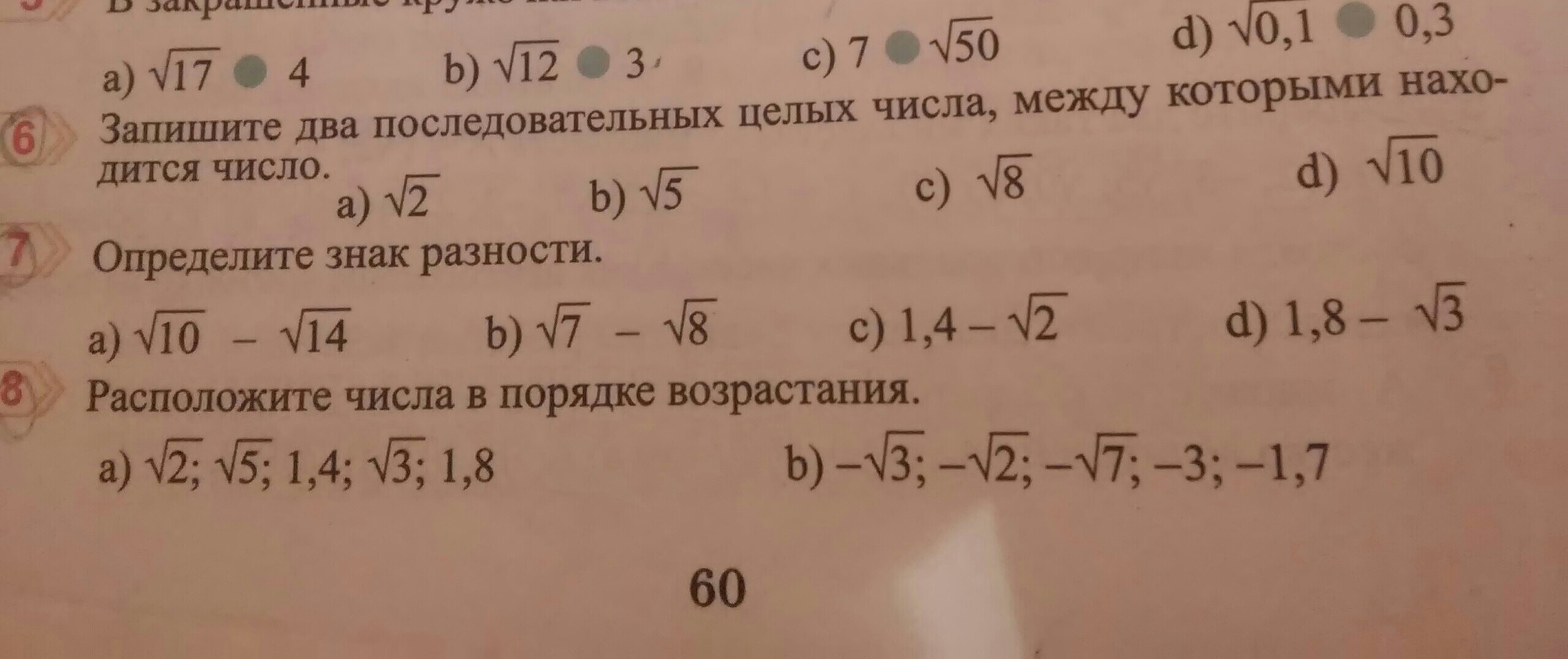 номер8 а)2 в корне ,1,4, корень из трех, 1,8 , корень из пяти