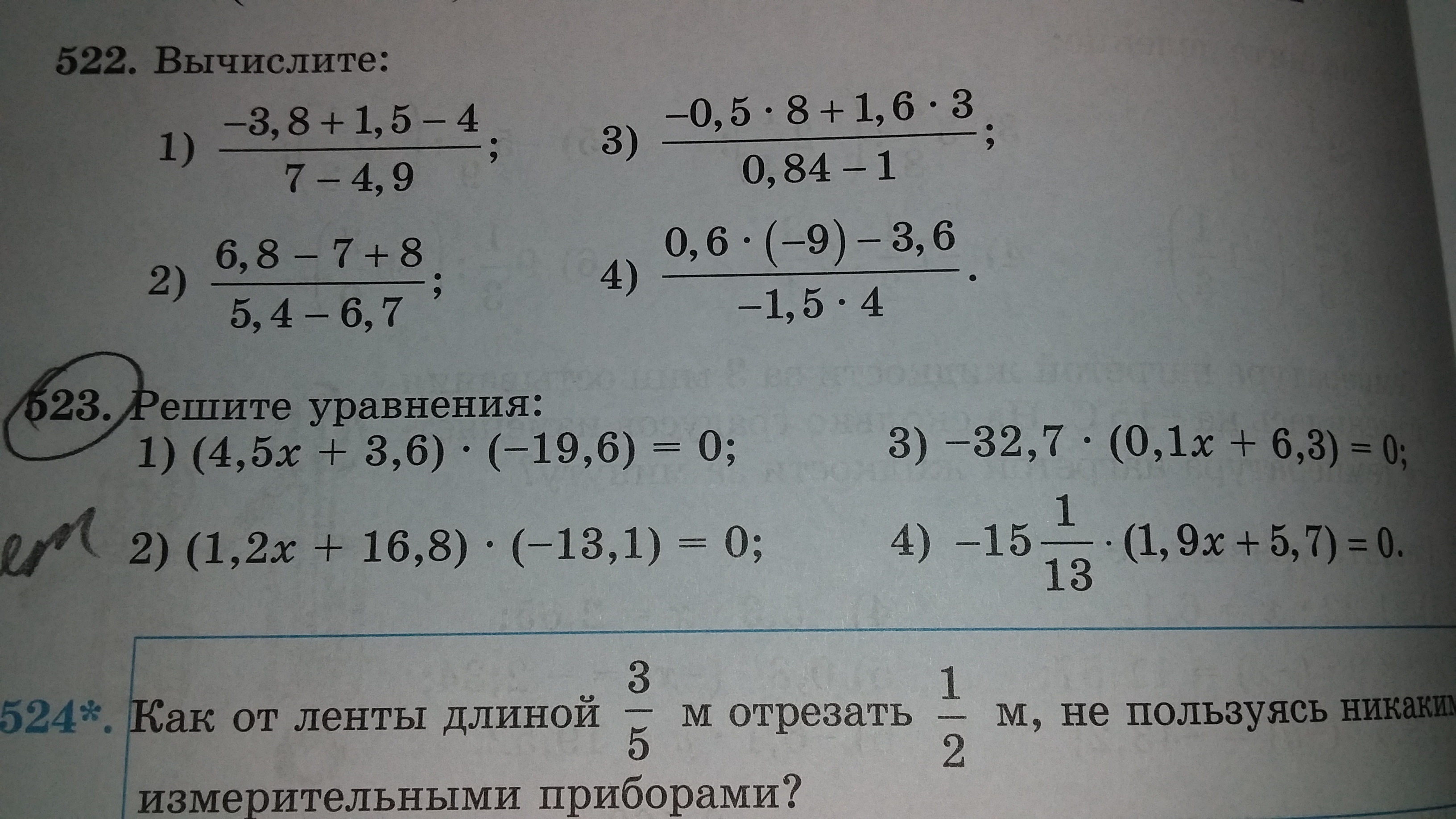 В 1-м делим левую и правую часть начисло -19,6, получаем 4,5х=-3,6 х=-14 во 2-м делим на -13,1 и получаем 1,2х+16,8=0 .1,2х=-16,8 х= -14 далее все также отв в3-м -63, в4-м -3