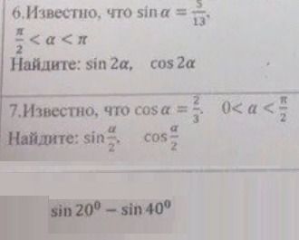 6) sina=5/13 pi/2<a<pi => 2 четверть